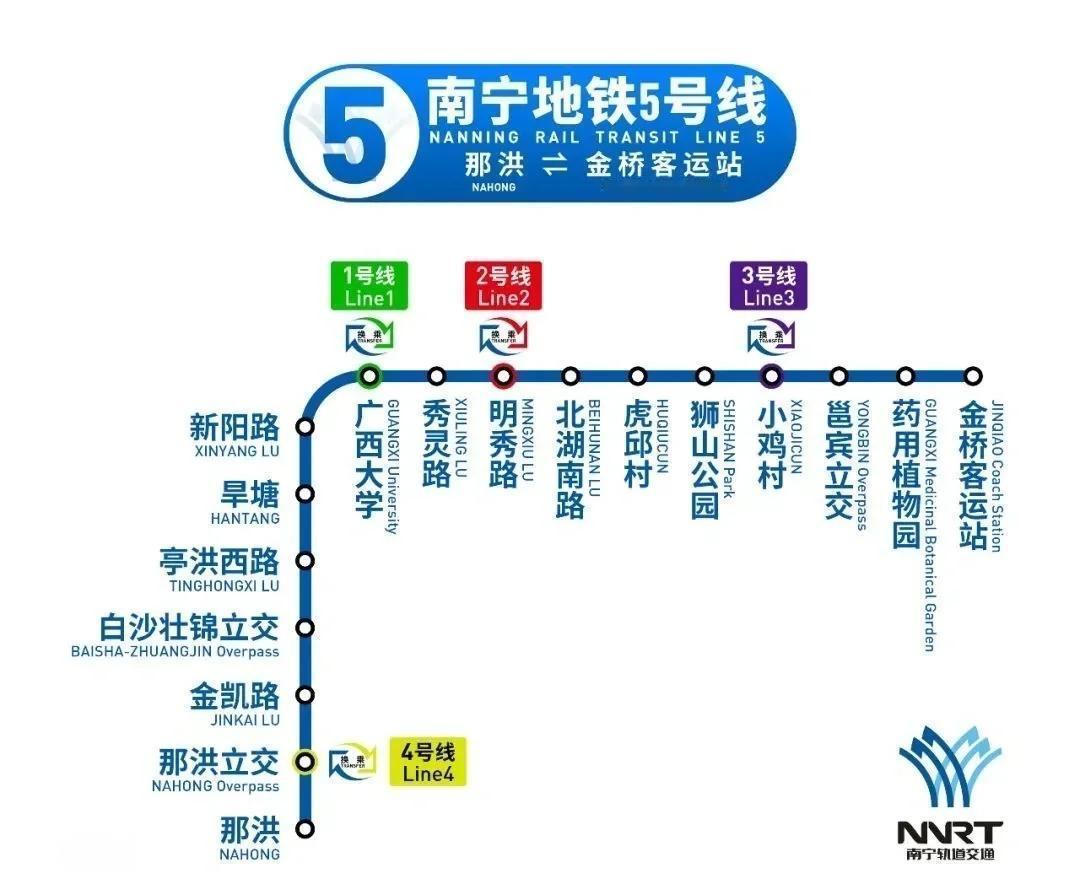 南宁轨道交通5号线南延线—南宁轨道交通的救命稻草 线路北起国凯大道站,南至那丹站,全长6.7公里(地下线4.7公里,高架线2公里),设那罗站(路堑式)和那丹站(高架换乘站)两座车站,与机场线实现换乘。工程总投资21.07亿元,计划2027年9月通车。 南延线终点那丹站接入轨道交通机场线,形成空港经济区与主城区快速通道。线路建成后,将串联江南区、经开区,并通过机场线实现市区与吴圩机场的快速通达。