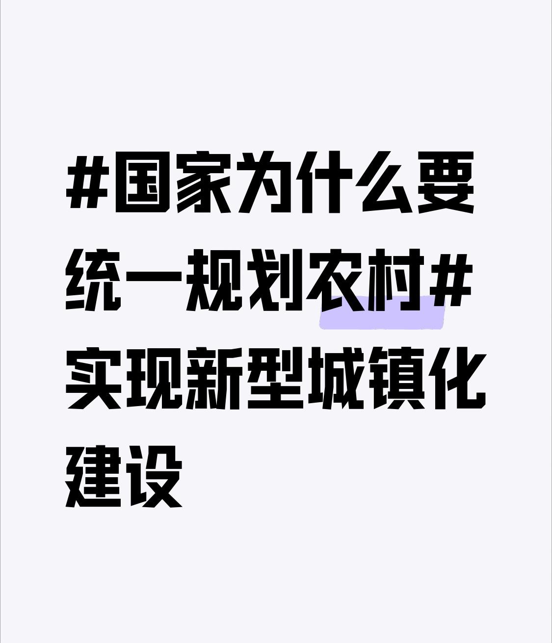 国家统一规划农村实现新型城镇化建设太有必要了。 交通是发展的关键。很多农村在山区丘陵,交通不便限制了发展。像“西部大开发”,国家统一规划农村道路建设,打通农村与外界联系。成昆铁路开通后,沿线闭塞小镇加快了人员和货物流通,至今都推动着农村经济。 居住条件也得改善。农村老旧木屋易引发灾害,且居民分散施救难。大凉山悬崖村原本交通闭塞,村民爬藤梯进出,国家将其搬迁至山下平坦处,统一建村舍,改善了生活。 此外,统一规划利于乡村振兴。比如对闭塞山村统一规划,发展特色旅游,让农民集中安置还能拿分红,提高了收入。 建议都是老人留守农村统一城镇规划迁移