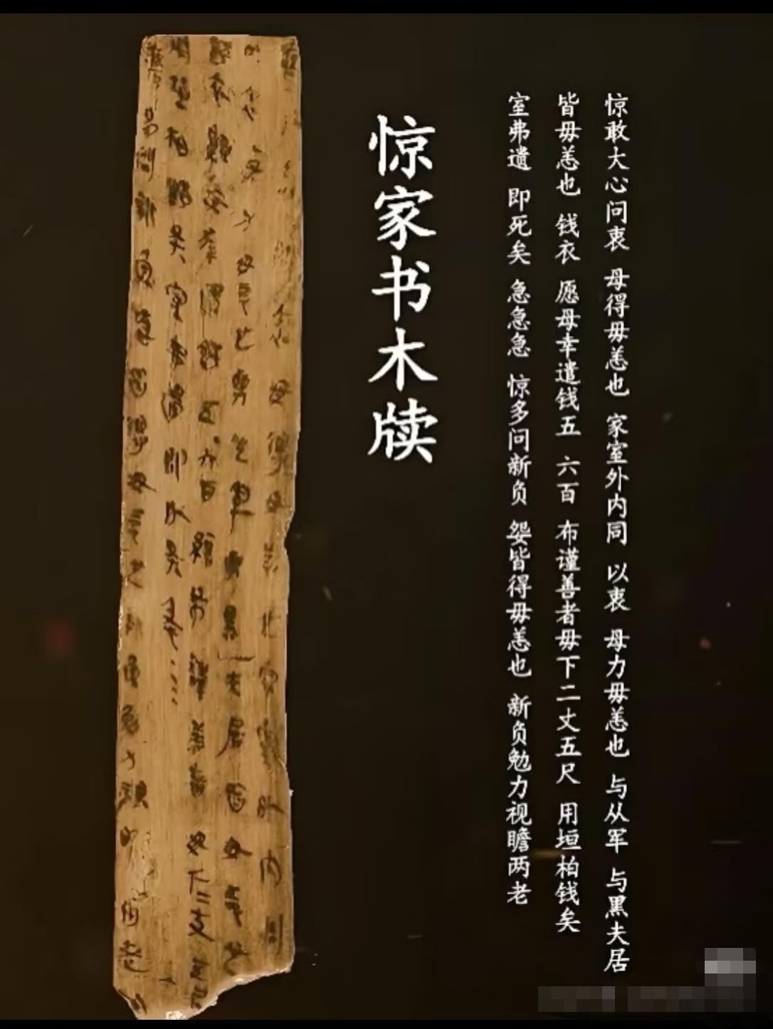 穿越2000年,一个秦国普通士兵的家信! 云梦睡虎地发现的墓中,其中4号墓还有两件弥足珍贵的写满文字的木牍。这是两封信,是中国现存最古老的家书。 写信人是两位名叫黑夫与惊的士兵,收信人是他们的兄长衷。 而云梦睡虎地为什么能发现这么多保存完好的千年竹简?主要是由于其地处云梦泽附近,地下水位高,墓葬长期被地下水浸泡,能有效隔绝氧气,抑制需氧微生物滋生,减缓竹简腐朽。同时,当地土壤酸碱度偏中性,地下温度长期稳定,避免了竹简因酸碱腐蚀或温湿度剧烈变化而碎裂。此外,墓葬所用棺木多为耐腐材质,且棺椁密封性较好,如同为竹简打造了保护舱,进一步阻挡外界有害物质侵入,最终让这些秦代竹简得以跨越千年留存至今。