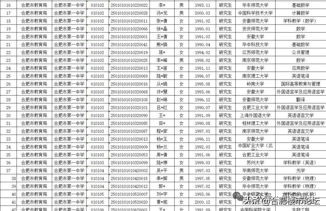 合肥一中2025年招聘的新任教师名单,现在都是要研究生了,不像以前本科毕业的就行