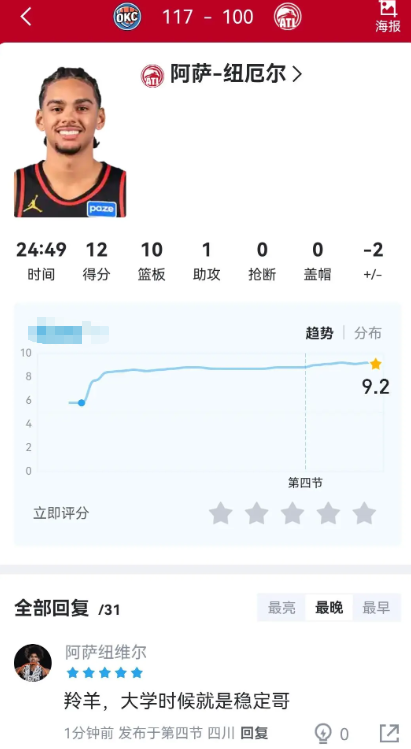 希望明天打快船,小杨能够在前面有限的出场时间展现一些特点从而争取更多的上场时间,打出好看的数据。