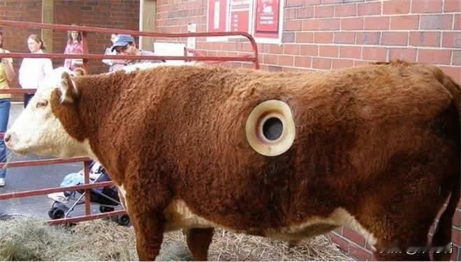 在北美地区的兽医学校、大型动物医院和农场中有一个很常见,但又非常奇怪的现象,你会发现有一些牛身上都开着一个“洞”。很多人不理解,美国养牛场为什么要这么做?其实,这个“洞”大有学问,看完你一定会长见识。 这一切要从牛的消化系统说起。牛作为反刍动物,拥有四个胃室,其中最大也最重要的是瘤胃。 瘤胃就像一个天然的发酵罐,里面住着数以亿计的微生物,帮助分解植物纤维、合成营养物质。 然而,在人工饲养环境下,牛常常因为饲料单一、进食过快或运动不足,导致瘤胃功能失调,出现胀气、消化不良甚至严重感染。 一旦发病,牛不仅停止进食、体重下降,还可能因胃部积液或脓液堆积而死亡。 在二十世纪初,美国奶牛胃病频发,成为困扰养殖业的难题。1928年,北达科他州农业学院的两位科学家首次尝试在活牛瘤胃上“开窗”。 他们通过外科手术在牛腹部开孔,将瘤胃与皮肤缝合,再安装一个带盖子的瘘管。这样,人们就能随时观察胃内情况、提取消化物样本,甚至直接干预胃内环境。 这种方法后来被称为“瘤胃开窗手术”,最初用于科学研究,后来逐渐被应用到养殖实践中。 你可能会问:既然现代医学这么发达,为什么不能通过药物或常规治疗来解决问题? 事实上,很多牛的胃病具有隐蔽性和突发性,等到出现明显症状时往往已是晚期。 而通过这个“洞”,饲养员或兽医可以实时掌握胃内发酵情况、微生物活性以及食物消化状态,从而及时调整饲料配比,或在必要时人工取出未消化的积食、投入益生菌,恢复胃内菌群平衡。 某种程度上,这个洞成了牛的“健康窗口”,让饲养管理更加精细化。 当然,手术本身也带来痛苦。尽管手术会在全麻或局麻下进行,牛在术后恢复期仍会经历疼痛和不适,需要一段时间愈合并适应身上的瘘管。 对于这种行为,许多兽医解释说,这是“以短痛换长健”的做法。相比反复发作的胃病、多次开腹手术甚至提前死亡,一次性的瘤胃开窗反而延长了牛的寿命,提高了其生活质量。 不管是不是狡辩,这个做法确实在美国普及开来,并取得了一定的效果。 美国是世界上牛奶和牛肉产量大国,畜牧业追求高效率与高产出。通过瘤胃开窗,不仅能预防疾病,还能通过人工调控消化过程,促进营养吸收,让牛长得更快、产奶更多。 既然这个方法这么有效,为什么这样的做法只在美国常见,而在中国等其他国家却很少见呢? 这其中既有养殖模式的差异,也有观念上的不同。中国人常说“牛是农家宝”,传统养殖更倾向于自然放养、粗养慢养,尽可能减少人为干预。 而在美国,集约化、规模化的养殖模式更倾向于通过技术手段控制风险、提升产出。这并不是谁对谁错,而是不同农业文化与阶段的选择。 当然,也有人从动物福利角度提出批评,认为这种手术侵犯了牛的自然生存权,是人类过度操控动物身体的极端表现。 尤其在今天,随着动物伦理意识的增强,任何对动物的侵入性操作都受到更多审视。 不过,也有支持者认为,如果这种方式确实能减少牛群疾病、降低死亡率,那么在保障动物基本福利的前提下,它是一种可接受的管理技术。 美国人为经济发展选择在牛身上开一个洞,方便随时查看牛的身体状况。明明是残忍的手段,却被他们冠以“为了牛的健康”这样的理由,美名其曰为科学与效率,真是讽刺!