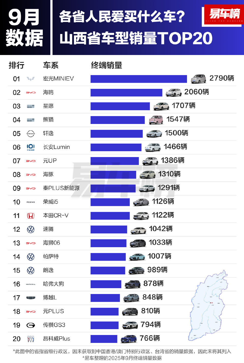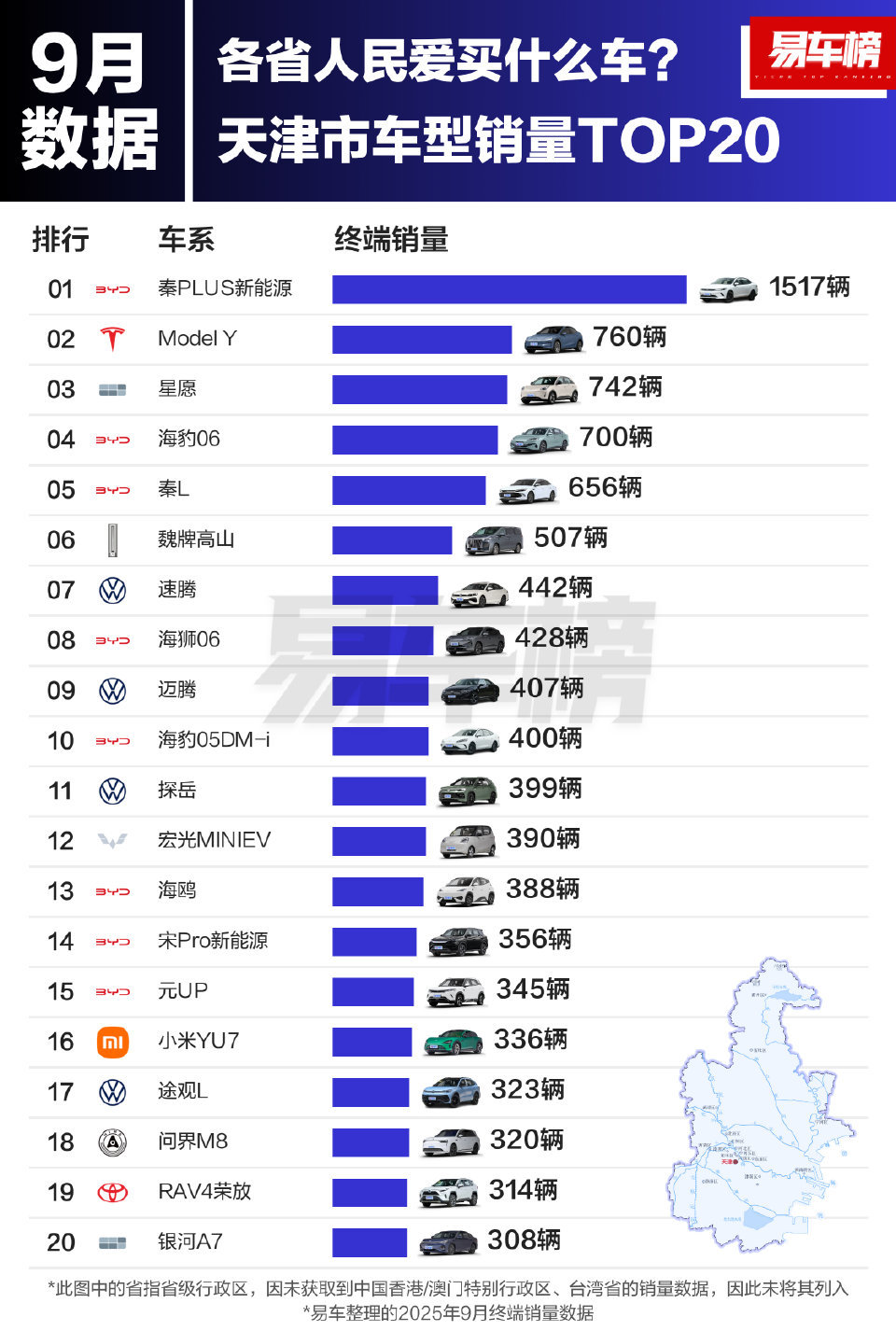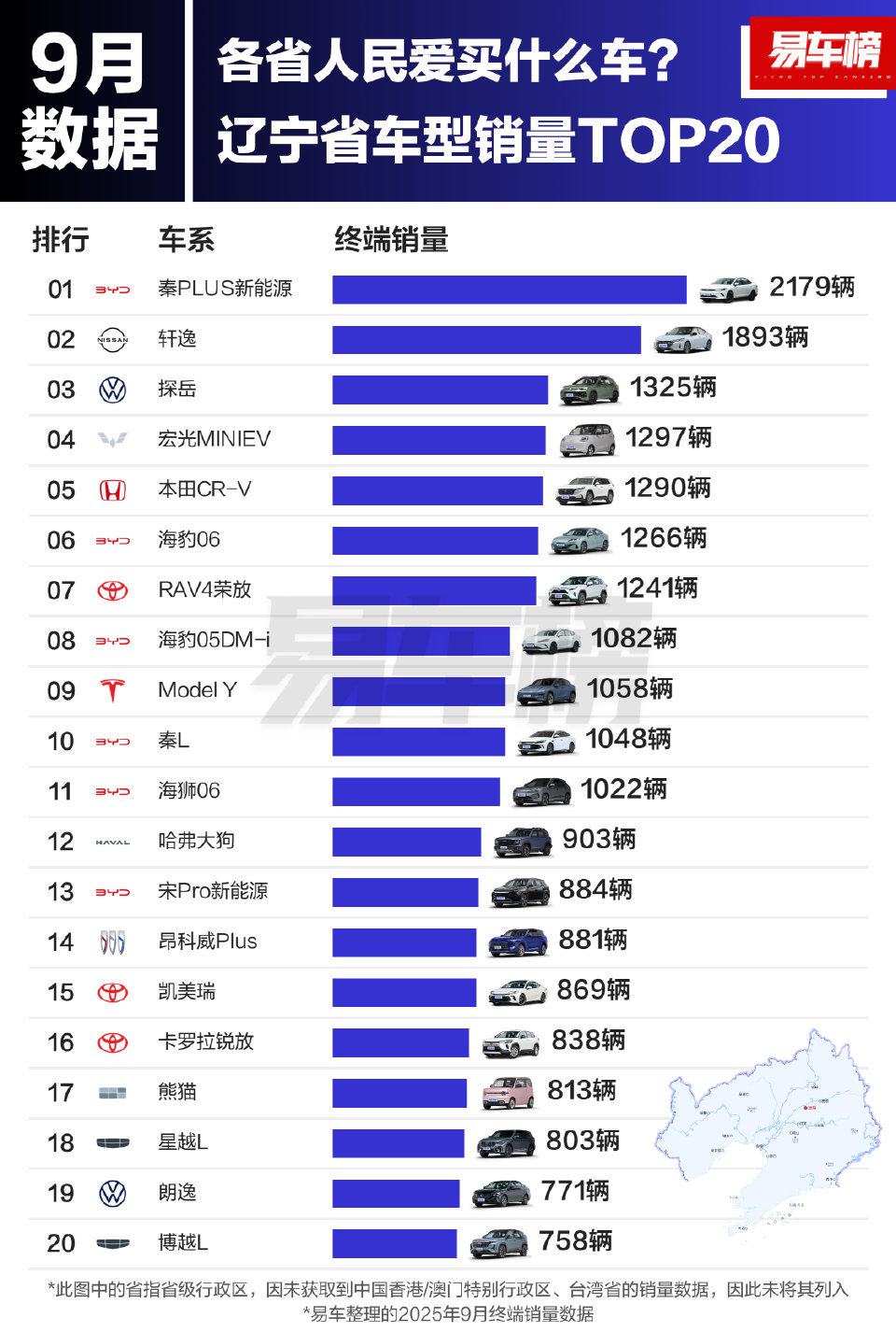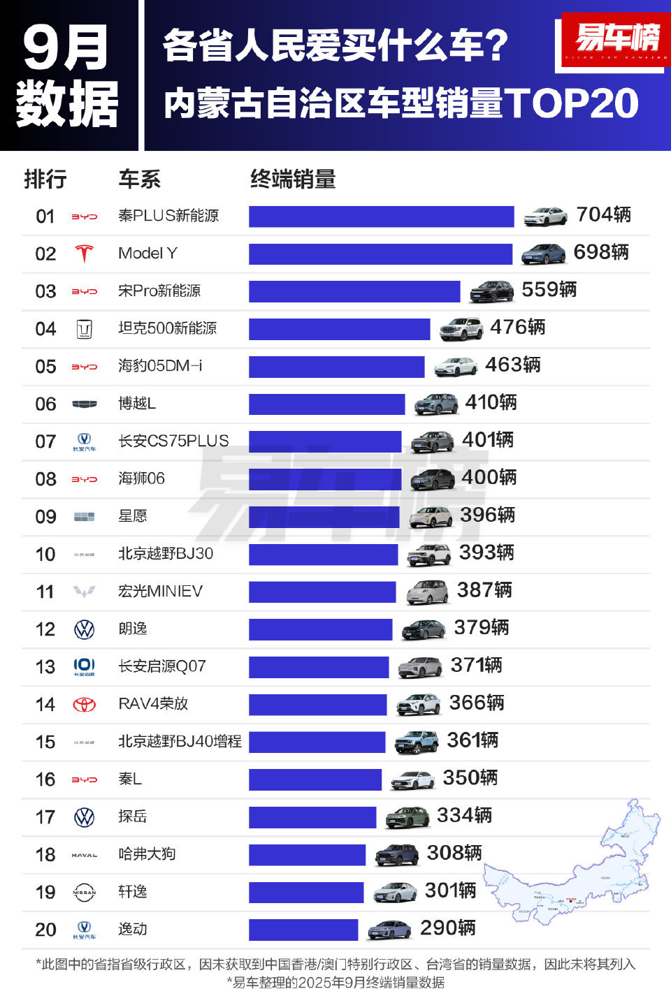 内蒙古自治区车型销量第一名为秦PLUS新能源;