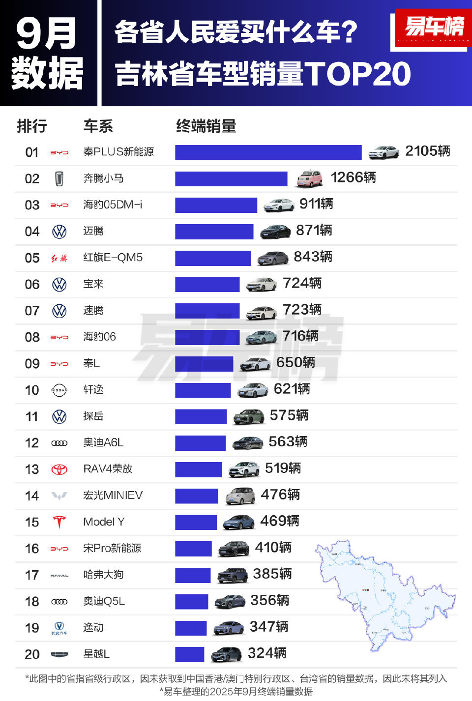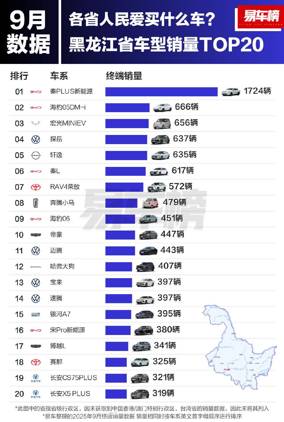 黑龙江省车型销量第一名为秦PLUS新能源;