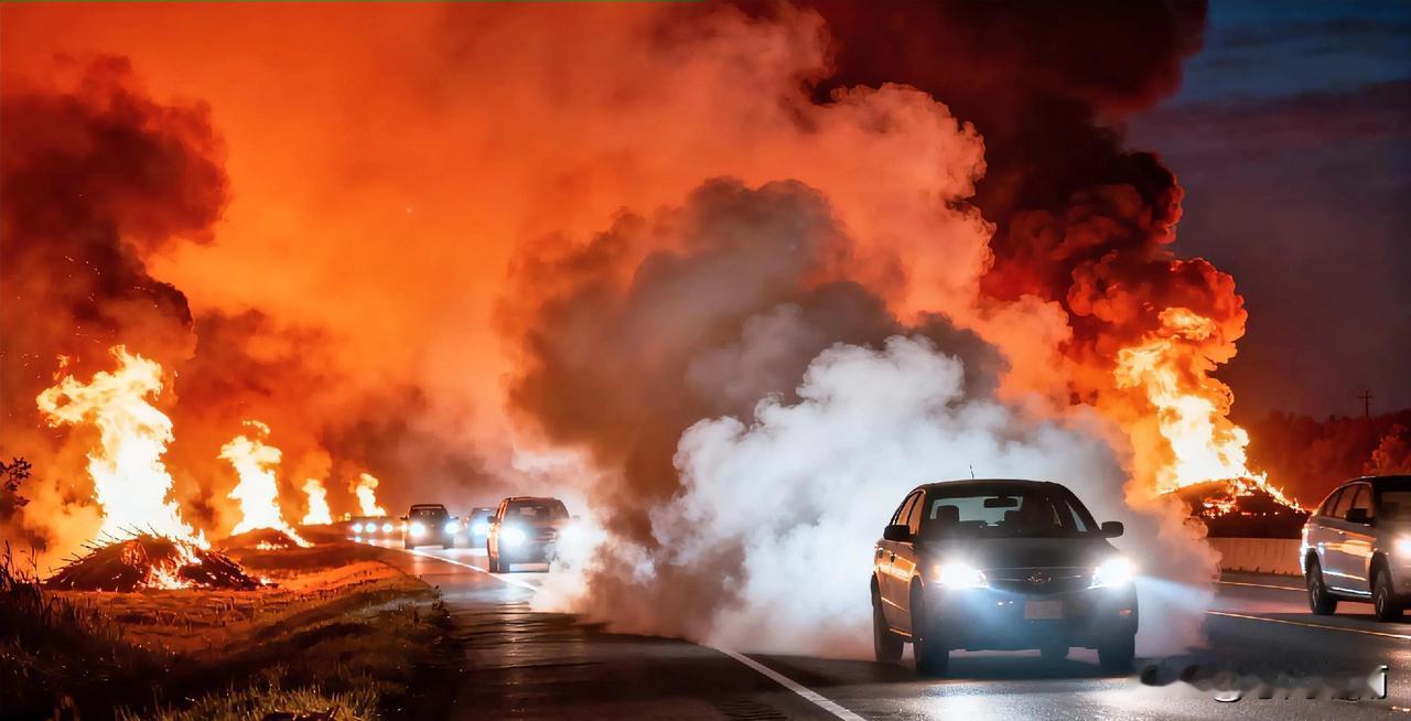 秸秆焚烧:守住高速安全线,管控需抓要害 秸秆焚烧的争议,核心在于农民生产需求与公共安全的平衡。对河南等粮食主产区的农户而言,秋收后秸秆堆积量大,若不及时清理会影响来年耕作,而焚烧既能快速清地,又能烧死虫卵、产生草木灰肥料,成为省时省力的选择,这一现实困境值得体谅。 但秸秆焚烧的危害绝不能忽视,尤其夜间在高速公路两旁焚烧,更是致命隐患。作为一名广东人,我曾途经河南时亲身体会过这种危险:夜幕下,高速沿线的焚烧点火光冲天,浓烟在车灯照射下产生刺眼的白色反光,瞬间遮蔽路面,能见度骤降,仿佛陷入迷雾,极易引发追尾、碰撞等交通事故,人命关天,令人心惊。 国家政策并非“一刀切”禁止,而是明确分类管控:高速沿线5公里内划定为永久禁烧区,夜间列为禁烧重点时段,违规焚烧将面临罚款,若引发事故还需承担法律责任。但要从根本上遏制危险焚烧,还需“疏堵结合”。 一方面要强化执行力度,在秋收等高发期增加高速沿线夜间巡查频次,用无人机排查隐蔽焚烧点,开通24小时便捷举报渠道,通过村集体提前警示农户;另一方面要解决农民的实际难题,在乡镇设秸秆回收点、补贴小型粉碎机、简化补贴流程,推广低成本就地处理技术,让农户有更省心省钱的选择。 秸秆处理既要体谅农情,更要守住安全底线。唯有精准管控危险区域和时段,同时完善务实的支持措施,才能既保障农业生产,又让高速出行远离烟雾隐患。