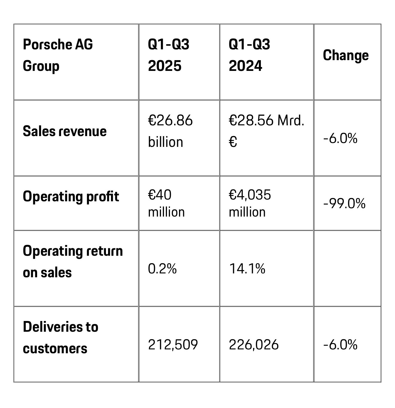 保时捷销售利润暴跌99%这是保时捷自己发的数据:2025年前三季度的利润约等于去