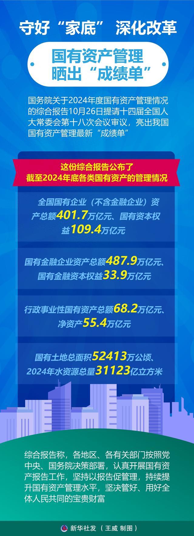 国务院关于2024年度国有资产管理情况的综合报告10月26日提请十四届全国人大常委会第十八次会议审议,亮出我国国有资产管理最新“成绩单”。