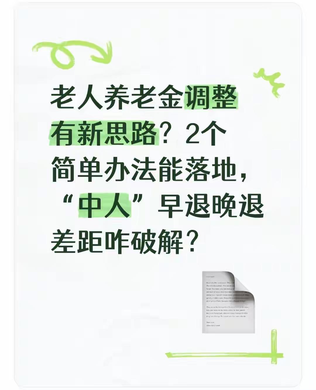 ​养老金调整新思路落地!“中人”早退晚退差距。 ​ 后台的留言区最近成了老同志们