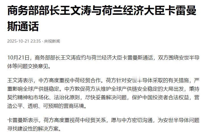 不能开心得太早!在我们都在笑话荷兰抢安世抢了个寂寞的时候,没想到商务部部长已紧急