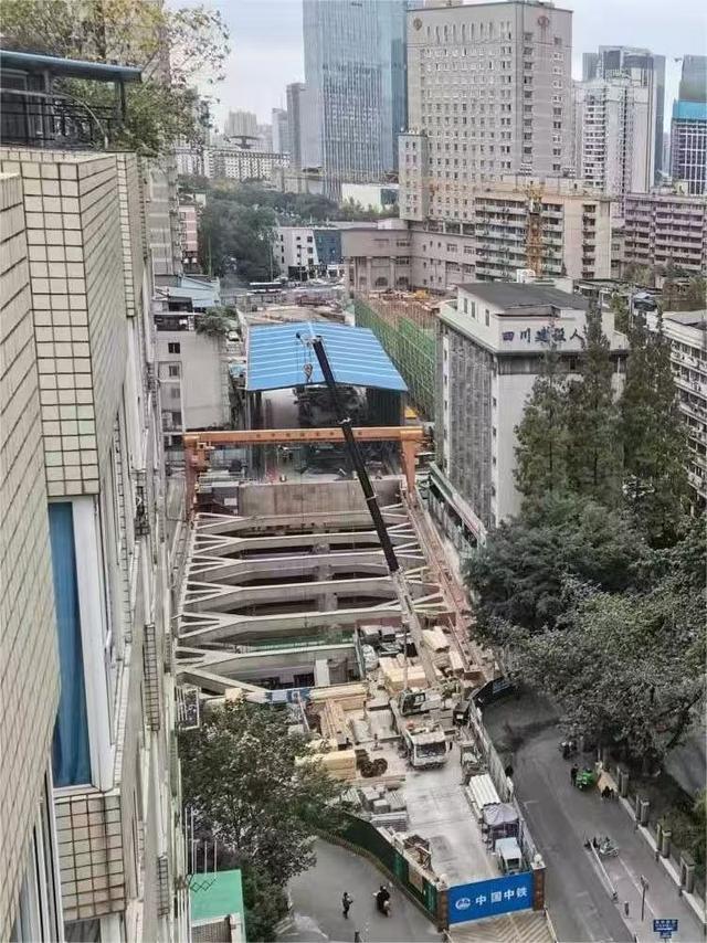 新南门站地处新南路与致民路交汇处,周边建筑密集、人流如织,施工空间极为有限。“这座车站几乎是‘嵌’进了闹市中,是13号线一期施工难度最大的车站之一。”成都轨道建设公司工作人员兰洋介绍。