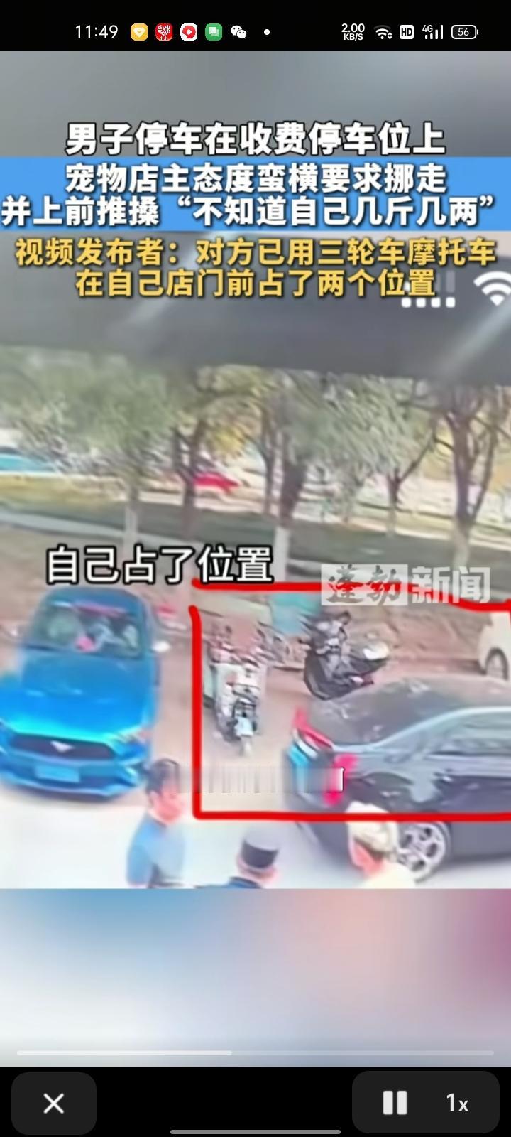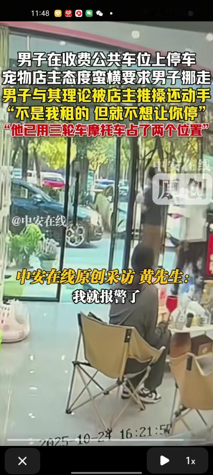 10月25日,苏州昆山市。网友发视频称,自己在收费公共车位上停车,位置在宠物店对面,未影响任何人。下午四点,宠物店店主要求把自己的车挪走,跟店主理论反被推搡还动手,说“不想让你停”。可以做,店主真是太霸道了,简直没有王法了。更过分的是,对方用三轮车和摩托车在自己店门前占了两个位置,最后选择报警处理。