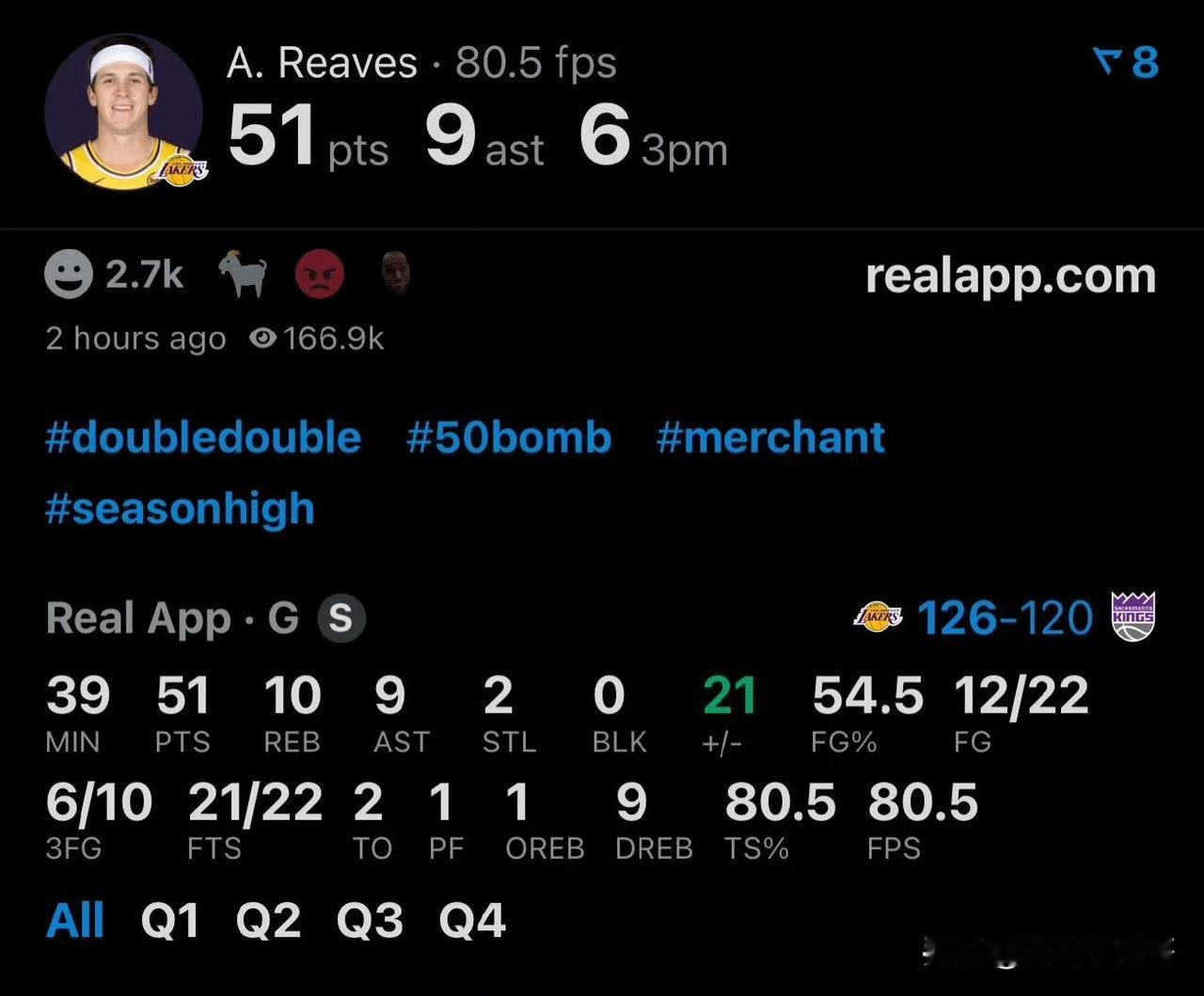 东契奇称里夫斯为GOAT!!!湖人双星疯狂为里夫斯生涯之夜call! 里夫斯在新赛季开始的第三场比赛就拿下了职业生涯新高,51分成就了他,也成就了湖人队,湖人没有兵败客场,而是带着胜利回到了主场迎接下一场比赛。 赛后,东契奇在第一时间祝贺里夫斯,称他为GOAT,直接让里夫斯封神了,要知道,当时东契奇差1分50的时候,里夫斯甚至调侃东契奇,没想到这次让里夫斯抢先拿到50分了。 另一位球星詹姆斯也是连续在社媒更新消息,他认为这简直太疯狂了,这孩子强的不是一点点。上一场是东契奇49分,这一场里夫斯51分,两人正好拿下100分,詹姆斯认为湖人的后场组合太强了。 湖人下一场将主场打杨瀚森所在的开拓者,明天还是这帮家伙,谁能站出来呢! 东契奇 湖人里夫斯 里夫斯 湖人队里夫斯 詹姆斯
