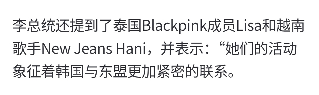 Lisa被韩国总统李在明提及为韩国-东盟联系的象征之一。