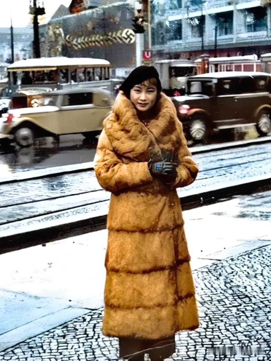 民国第一美女胡蝶,一九三五年在柏林街头的留影老照片,时年27岁,真是惊艳了时光!