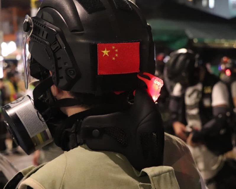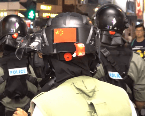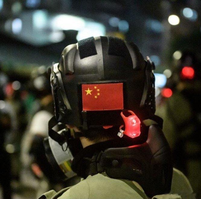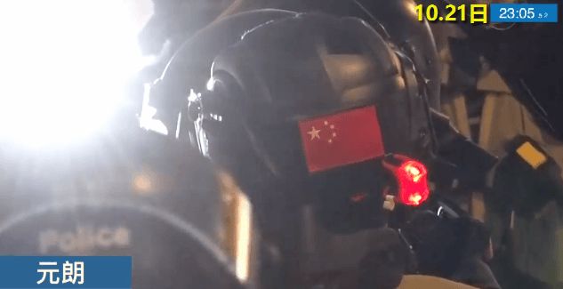 2019.10.21元朗有警员头盔上贴有国旗[赞][赞][赞]