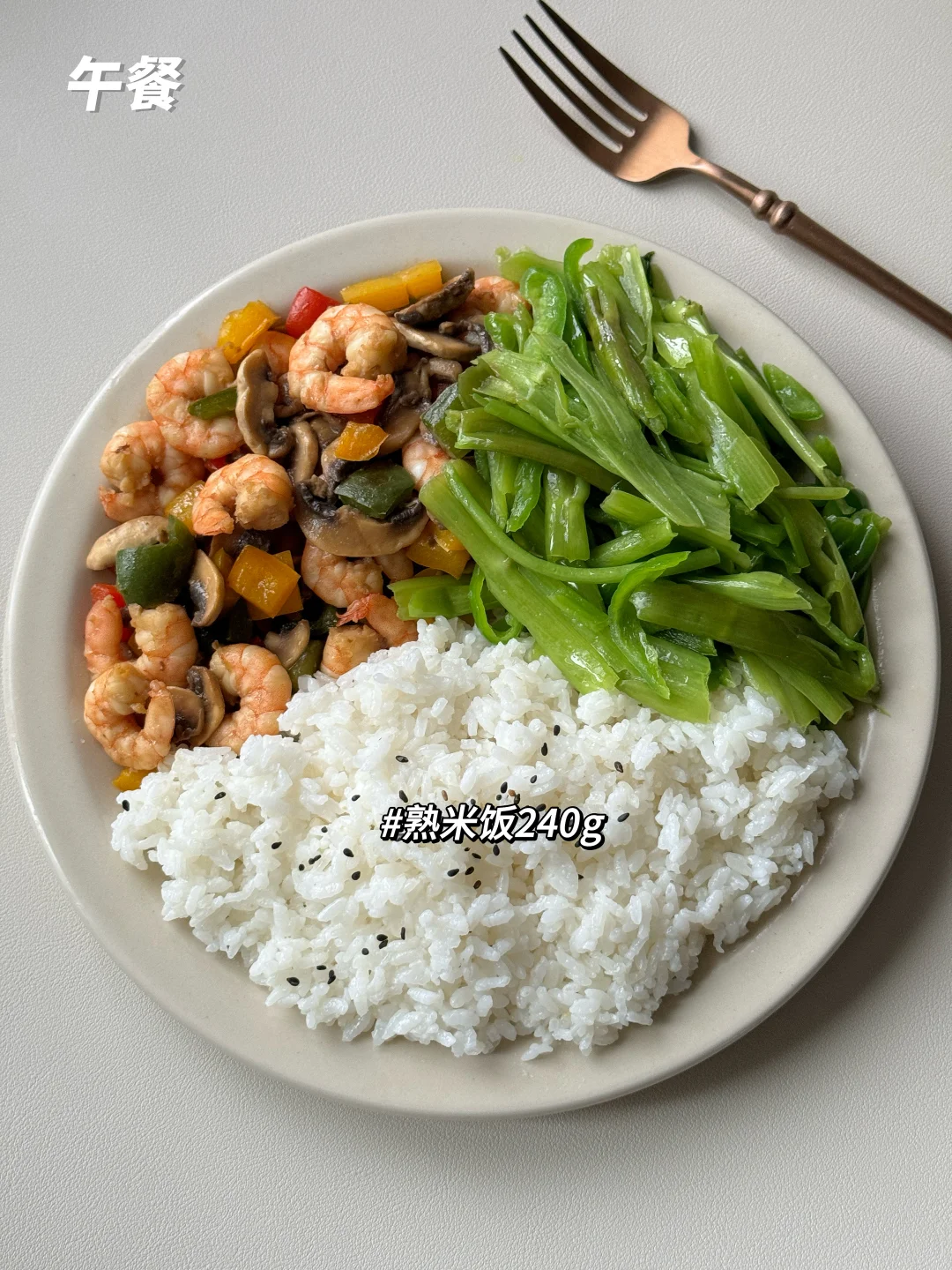 午餐🥣:米饭➕虾仁口蘑➕空心菜