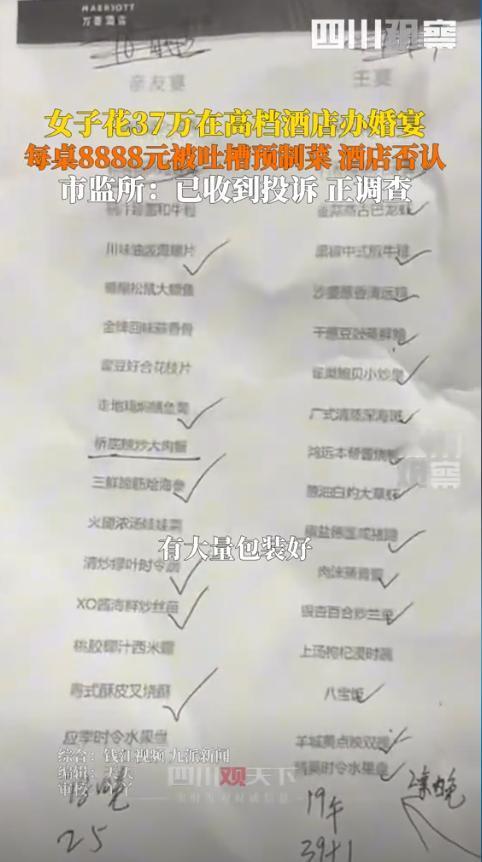 “婚宴预制菜受害者出现了!”上海,8888元一桌的婚姻酒席,多数竟是预制菜!新人花379800元办酒席,本想装一波逼,结果被亲戚朋友吐槽垃圾!而新人看到后厨,直接崩溃!网友:“哈哈哈,还不如我们农村七八百一桌的!” 据四川观察10月23日报道,婚礼那天,酒店里布置得那叫一个气派,亲戚朋友们也都穿得漂漂亮亮地来了。 大家坐下来,看着菜单上那些花里胡哨的菜名,都以为今天能好好搓一顿,可等菜一盘一盘端上来,大伙儿的脸色就开始变了。 菜的样子是挺好看,但一动筷子,味道就不对劲了,刚开始大家还不好意思说,毕竟是人家大喜的日子,可一桌子菜,从凉菜到热菜,再到汤品,吃来吃去都是那个味儿,一股子速食产品的味道,一点儿锅气都没有。 这下大家憋不住了,饭桌上就开始有人小声嘀咕:“这菜不行啊,感觉都是加热的。” 声音不大,但一传十,十传百,整个宴会厅的气氛都变了,本来应该是热热闹闹的场面,结果好多人都把筷子放下了,你看看我,我看看你,脸上写满了尴尬和嫌弃。 有些人干脆找个理由,直接提前走了,新郎新娘本来还在挨桌敬酒呢,看着这情况,脸上的笑容当场就僵住了。 亲戚朋友们那些复杂的眼神,看得他们心里是又气又委屈,感觉自己的脸都被丢光了,新郎实在是忍不了了,这婚结的,面子没挣到,反倒成了冤大头,他直接冲去找酒店经理要个说法。 酒店经理一开始还嘴硬呢,拍着胸脯保证,说他们家菜绝对是“100%现炒现做”的,新郎当时都快气炸了,哪还信他这套鬼话,直接撂下一句:“少废话,带我们去后厨看看!” 这不看还好,一进后厨,新娘当场就哭了,新郎也是气得浑身发抖,所谓的“星级后厨”,地上油腻腻的,角落里乱七八糟。 最让他们崩溃的是,里面哪有大厨颠勺炒菜的影子啊,到处都是成箱成箱的预制菜包装袋!网上卖十几块钱一个的塑料袋装咸猪手,在这儿成了宴席上的“大菜”,冷冻虾仁、没几两肉的贝壳、还有那种工厂做好的八宝饭,应有尽有。 整个厨房里,炒菜的灶台冷冷清清,反倒是一排巨大的蒸箱和烤箱在嗡嗡作响,工人们忙活的,就是把这些预制菜拆开包装,扔进机器里加热一下,然后摆个盘就端出去了。 真相大白,这近四十万花出去,结果请全家老小吃了一顿高价速食料理包!这口气谁能咽得下去?新人当场就把这事儿捅到了网上。 网上一曝光,立马就炸了锅,网友们那评论,简直是句句扎心。 有网友说:“笑死,我们村里办酒席,六七百一桌,请的师傅现场杀猪宰羊,那菜才叫一个香!” 还有人调侃:“这酒店老板真是个人才,这利润,比抢银行还快,关键是还不犯法。” 这些话虽然是在骂酒店,可听在新人耳朵里,那滋味儿,别提多难受了,他们花大钱想买个“高端”,结果在人家实实在在的“现炒”面前,成了最大的小丑。 说白了,现在很多人办婚宴,都掉进一个坑里了,总觉得价格越贵就越有面子,可酒店就抓住了你这个心理,用这些便宜的预制菜来糊弄你。 反正婚宴这种事,基本都是一次性买卖,宰一个算一个,他也不怕你下次不来,其实,结婚请客吃饭,图的是个喜庆,是那份人情味儿,菜好不好吃,代表的是你对客人的心意。 与其花大钱去买个不靠谱的“面子”,还不如找个实实在在、口碑好的地方,让大家吃得舒心,那才是真正的体面。 大家觉得办酒席是面子重要,还是里子重要呢?来评论区聊聊吧。 信源:四川观察2025-10-23——女子花37万在上海高档酒店办婚宴,每桌8888元却被吐槽预制菜。10月23日,酒店工作人员表示,可以保证不使用预制菜。上海浦东新场市场监督管理所一位工作人员称,就此事收到了投诉举报,目前还在调查中。
