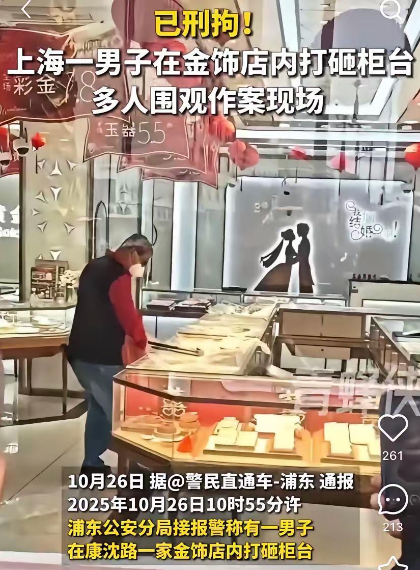 上海这起金店抢劫,看完我鼻子酸了! 10月26号上午,周浦一家中国黄金店,37岁
