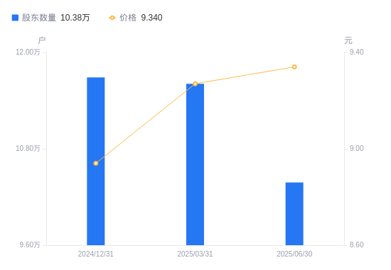 日期A股户数(户)流通A股户均持股数(股)户均持股市值(万元)2025-09-301424654162.345.592025-06-301038125712.135.342025-03-311160925107.924.742024-12-311168815073.434.542024-09-30661828959.967.222024-06-30623539510.186.022024-03-315334311116.518.502023-12-314298713794.5910.192023-09-303754215795.3210.312023-06-302932020224.7012.26