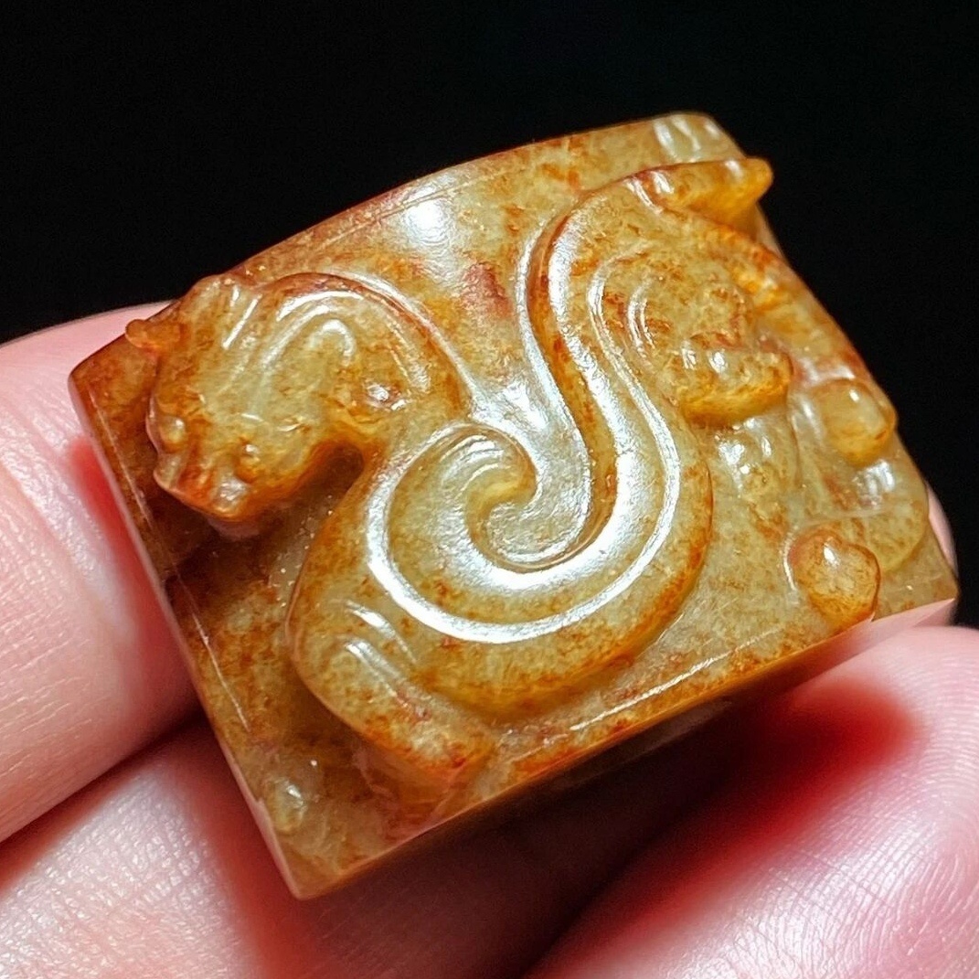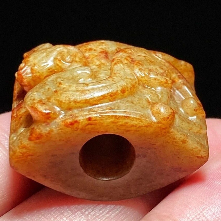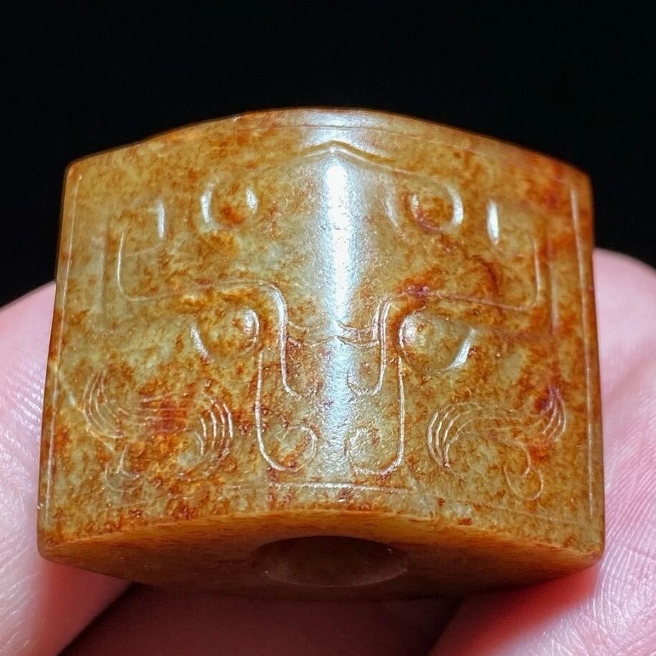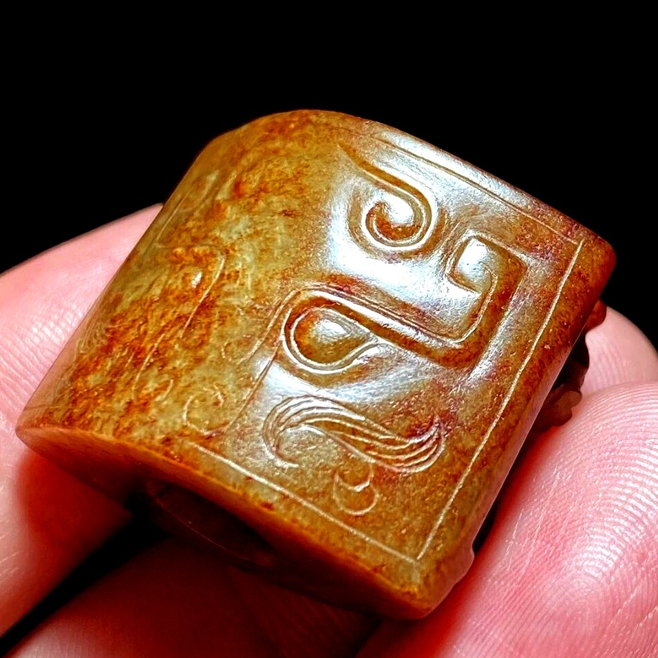汉代和田玉勒子,东西虽少,雕工一级,白玉已变成秋葵色,怎么看都十分舒服,适合与携带盘玩。