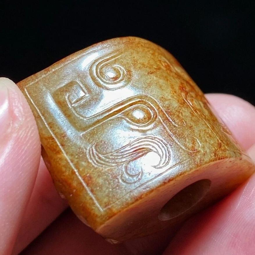 古玉杂谈 汉代和田玉勒子,东西虽少,雕工一级,白玉已变成秋葵色,怎么看都十分舒服