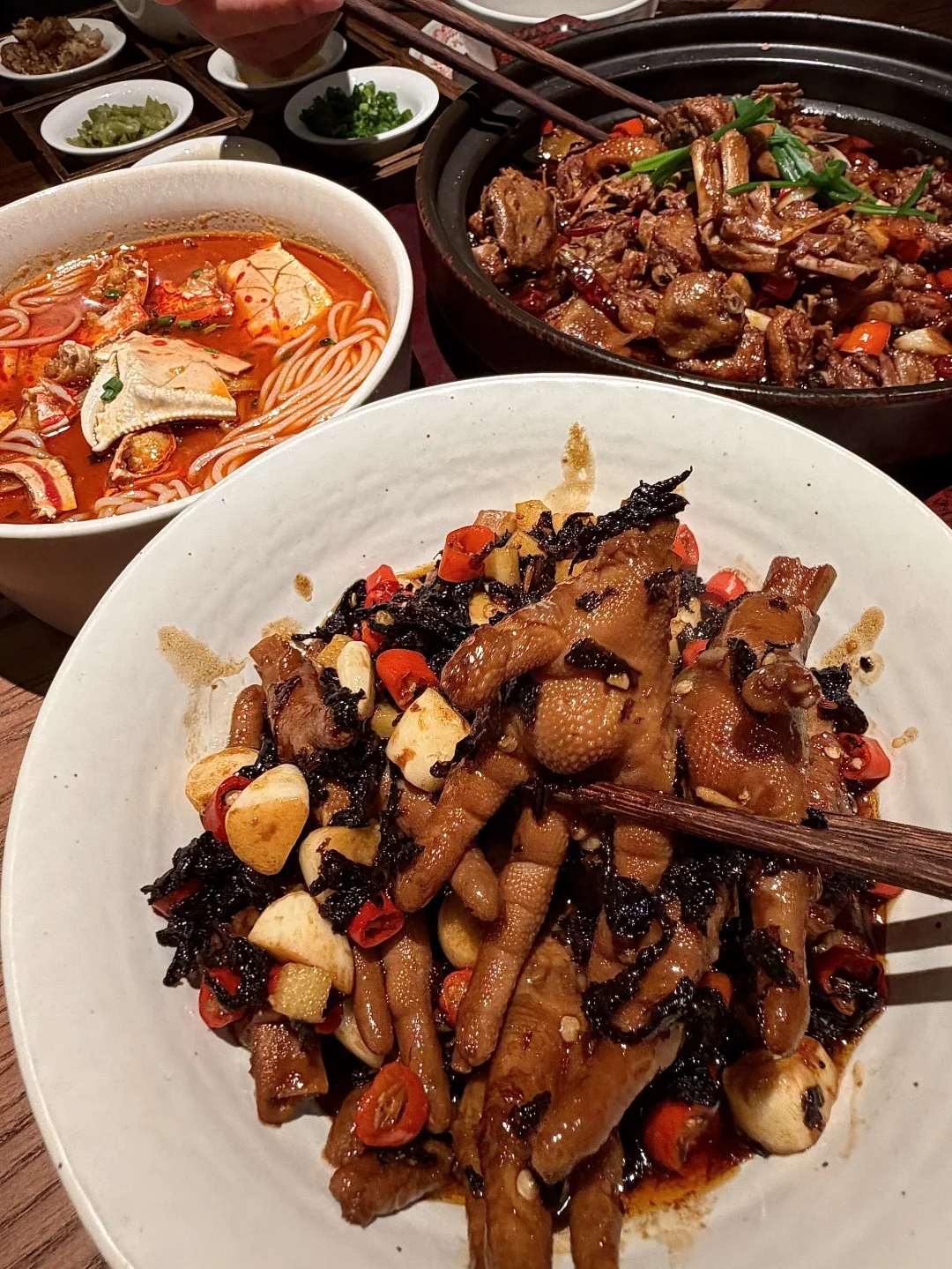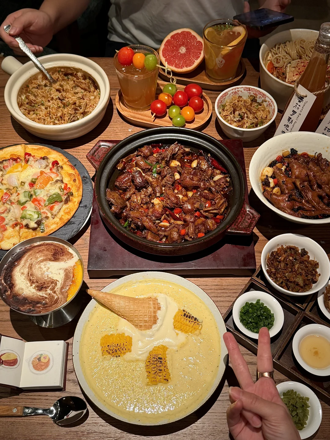 不好吃可以顺着网线来打我…… - ✔️冰淇淋甜筒玉米浓汤 冰淇淋➕玉米浓汤🌽没想到意外的好喝!!! ✔️蟹脚捞粉 大块蟹脚🦀搭配滑溜溜捞粉~嗦得停不下来!! ✔️梅干菜煨凤爪 鸡爪一抿就脱骨!麻麻辣辣好吃到嗦手指🤤!! ✔️烤棉花糖芝士红薯 芝士脑袋尊嘟会爱🧀软软糯糯趁热还会拉丝~ ✔️柚见赣橙观音 每杯漂亮水都蛮有特色🫧酸酸甜甜刚好解腻!!