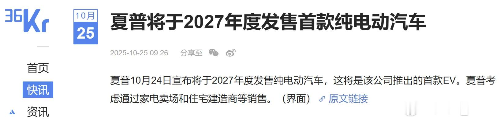 日本彩电品牌夏普也要造车,首款车型27年上市。