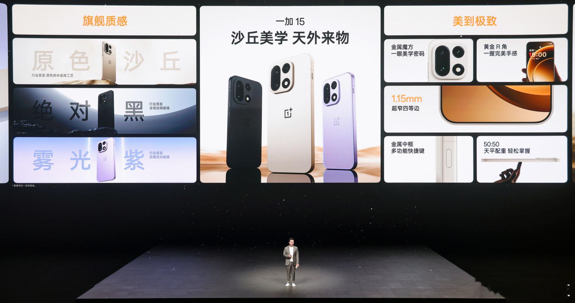 今天的第一款新品一加15定位“性能Ultra”旗舰,以顶级性能、全面配置引领手游体验新时代,填补市场空白;设计上融合沙丘美学,采用原色金属纳米工艺、全哑丝绸玻璃及双维流光工艺,配色优雅,背面“金属魔方”Deco设计质感满满,边框R角贴合掌心,正面四边等宽设计突破极限。