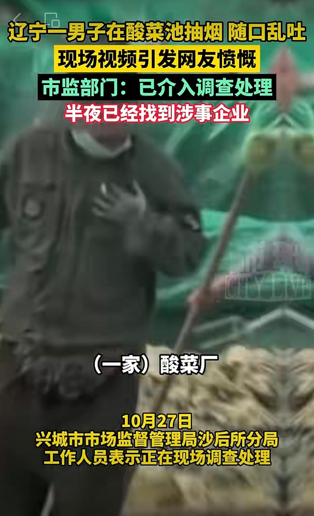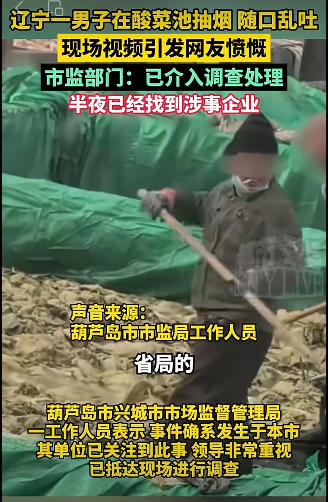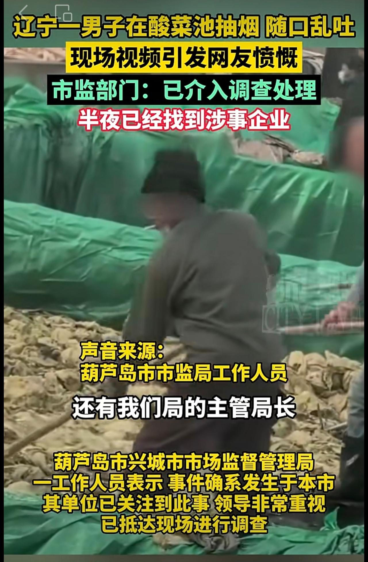 辽宁一男子在酸菜池抽烟,随口乱吐,现场视频引发网友愤慨,市监部门:已介入调查处理
