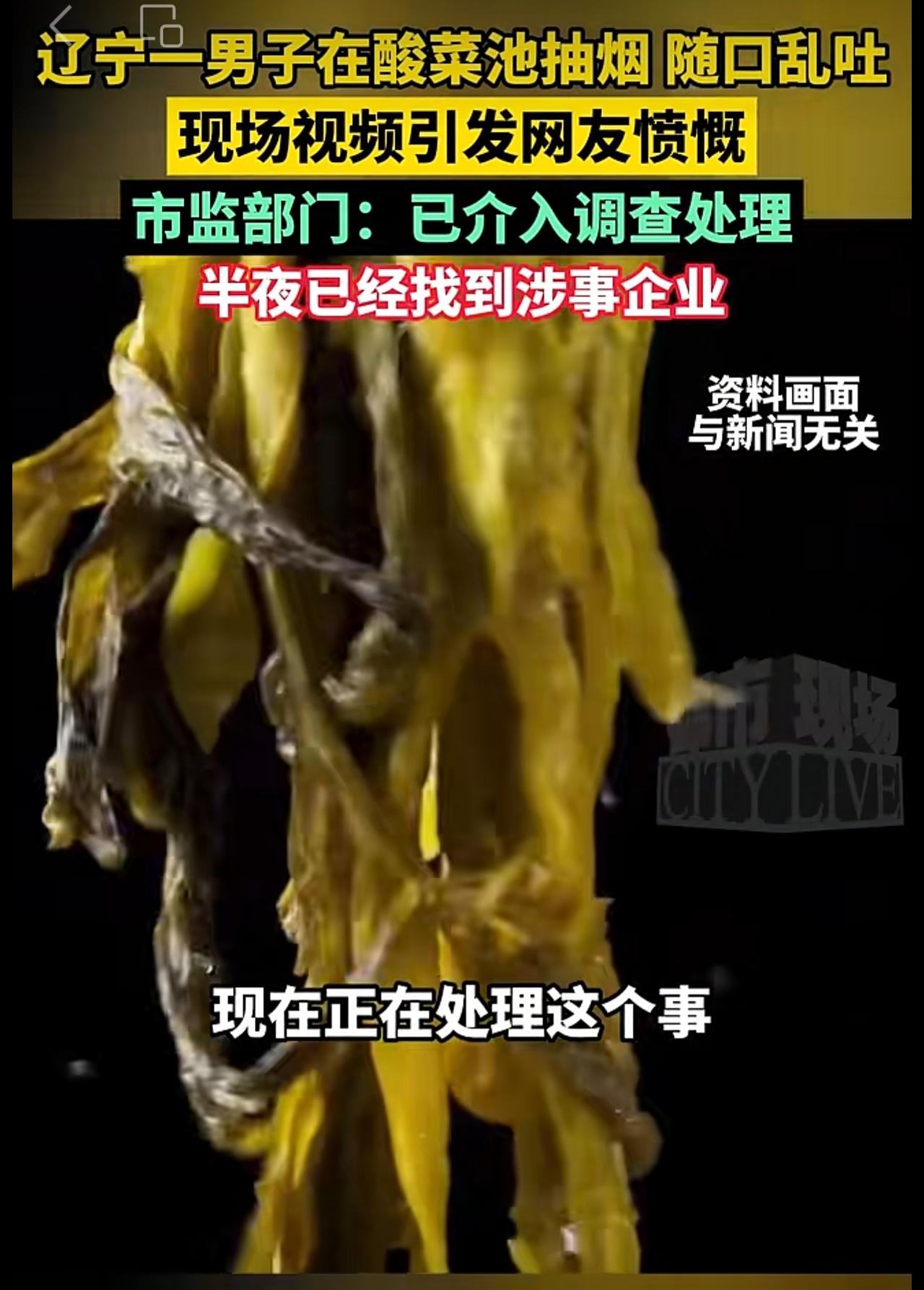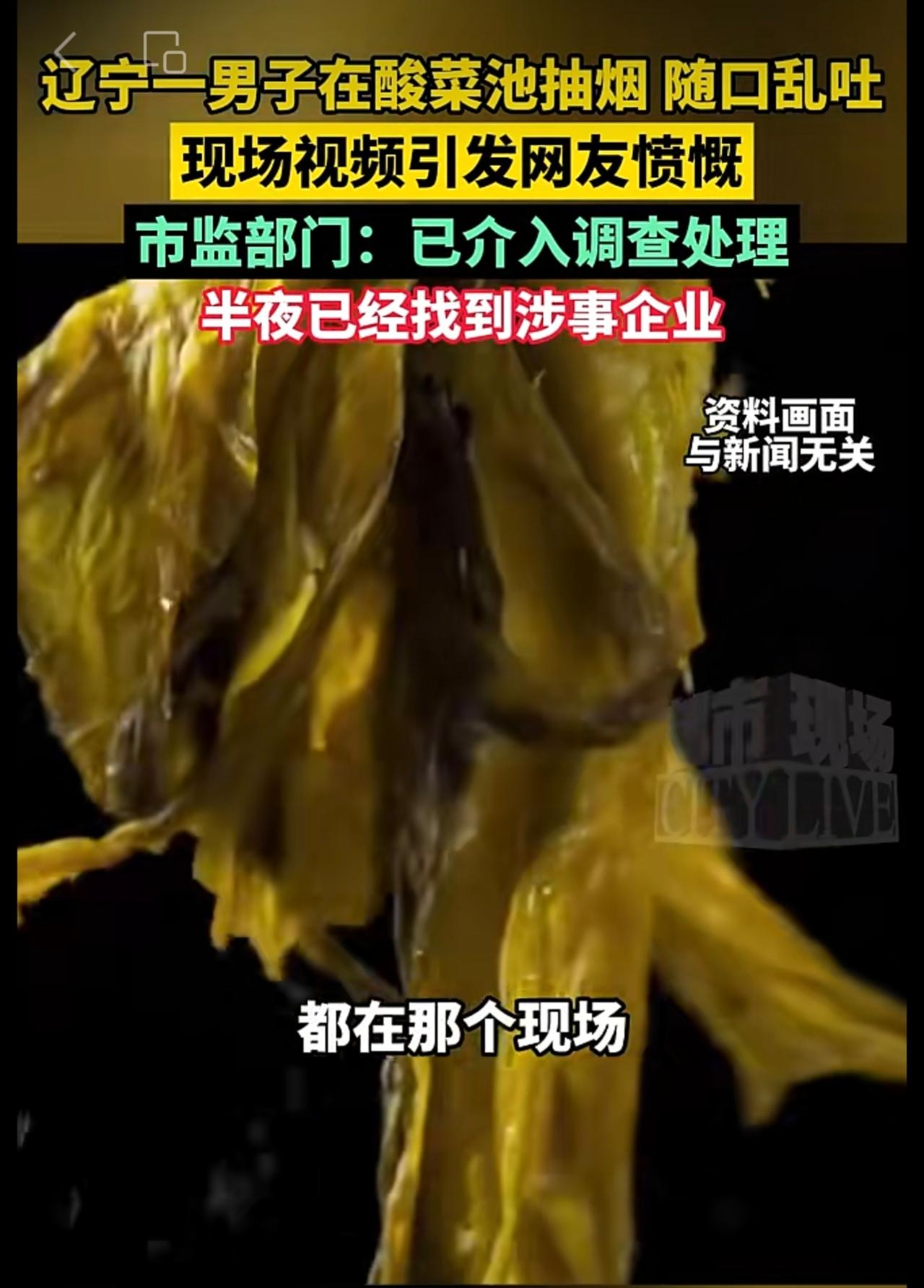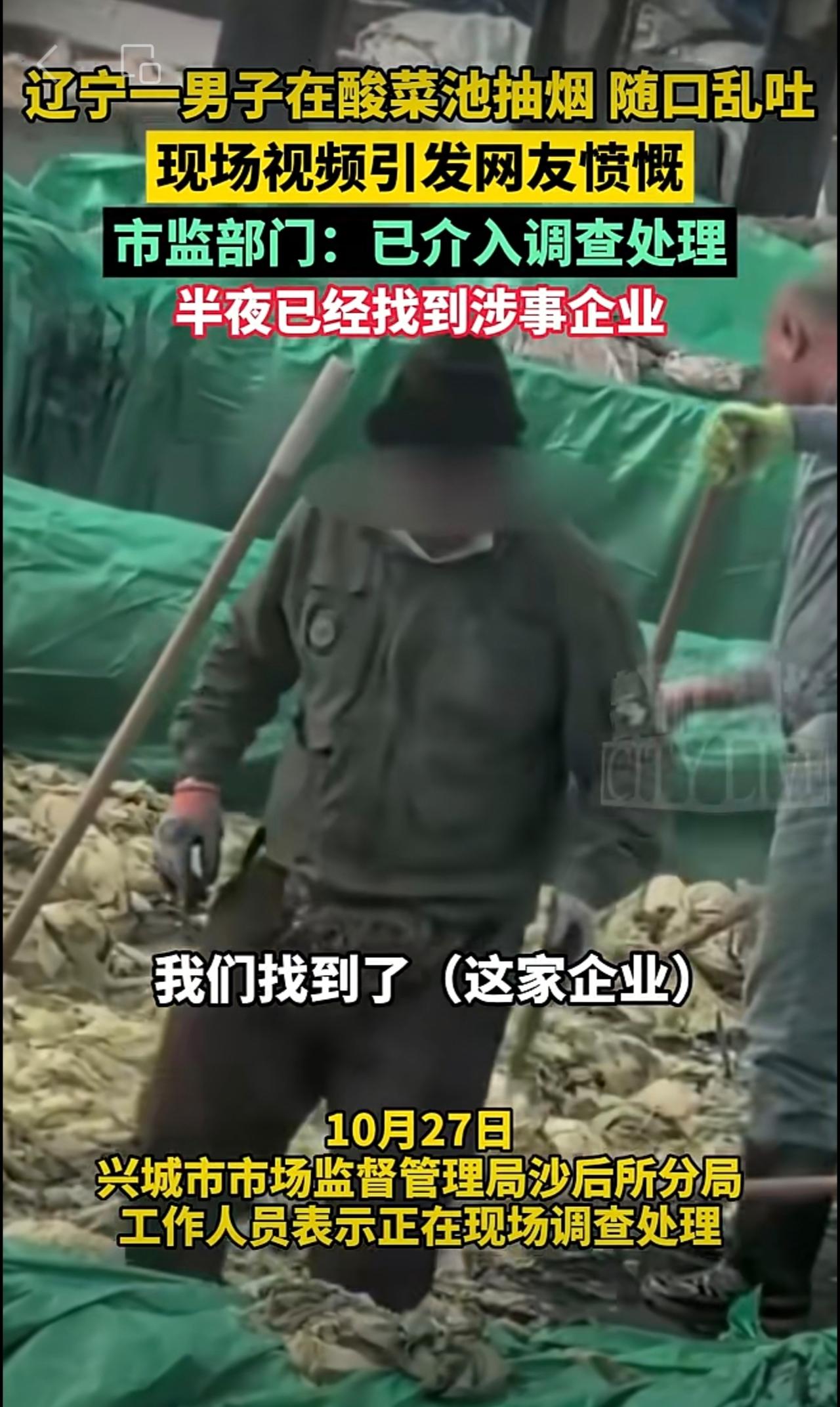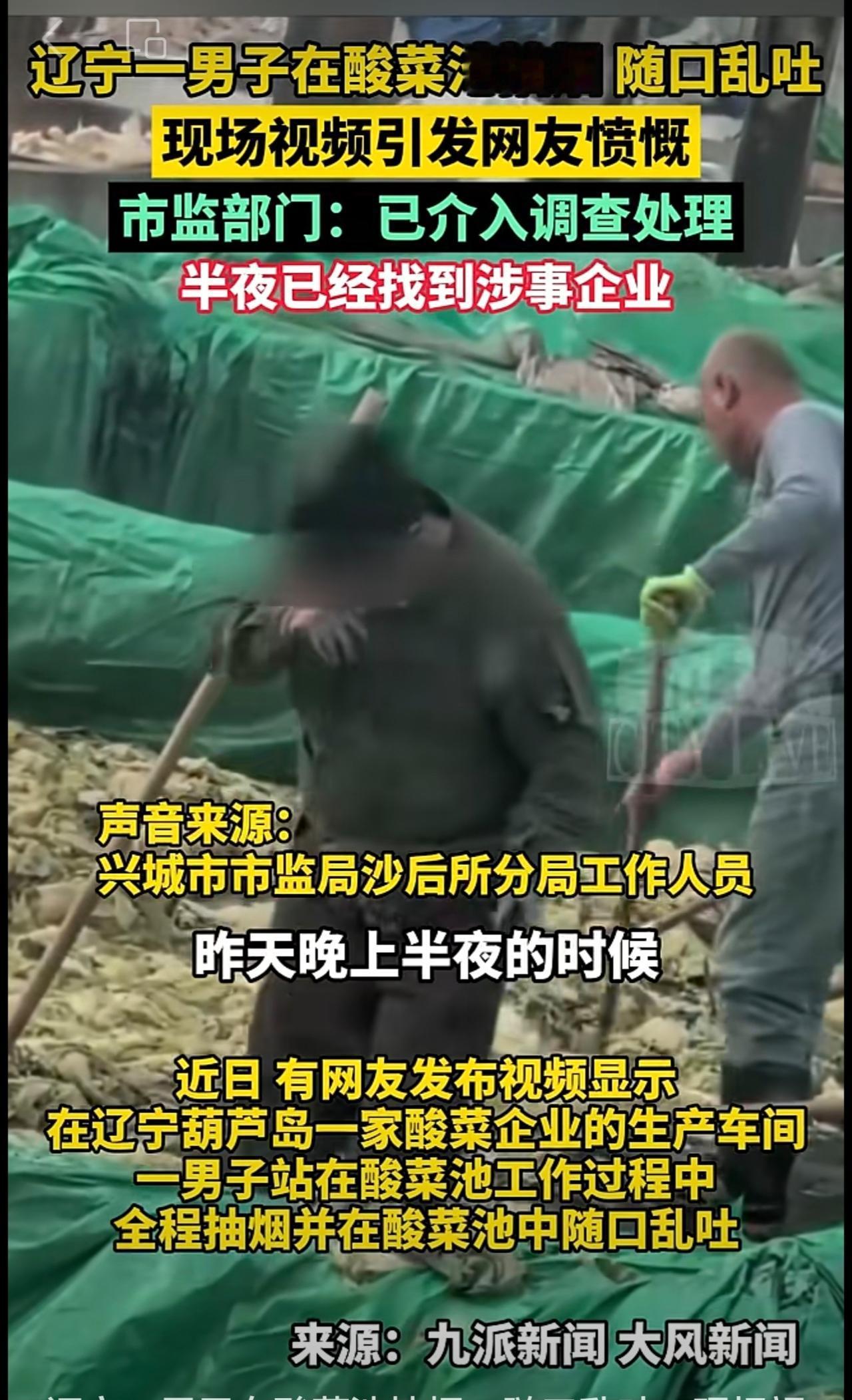 辽宁一男子在酸菜池抽烟,随口乱吐,现场视频引发网友愤慨,市监部门:已介入调查处理