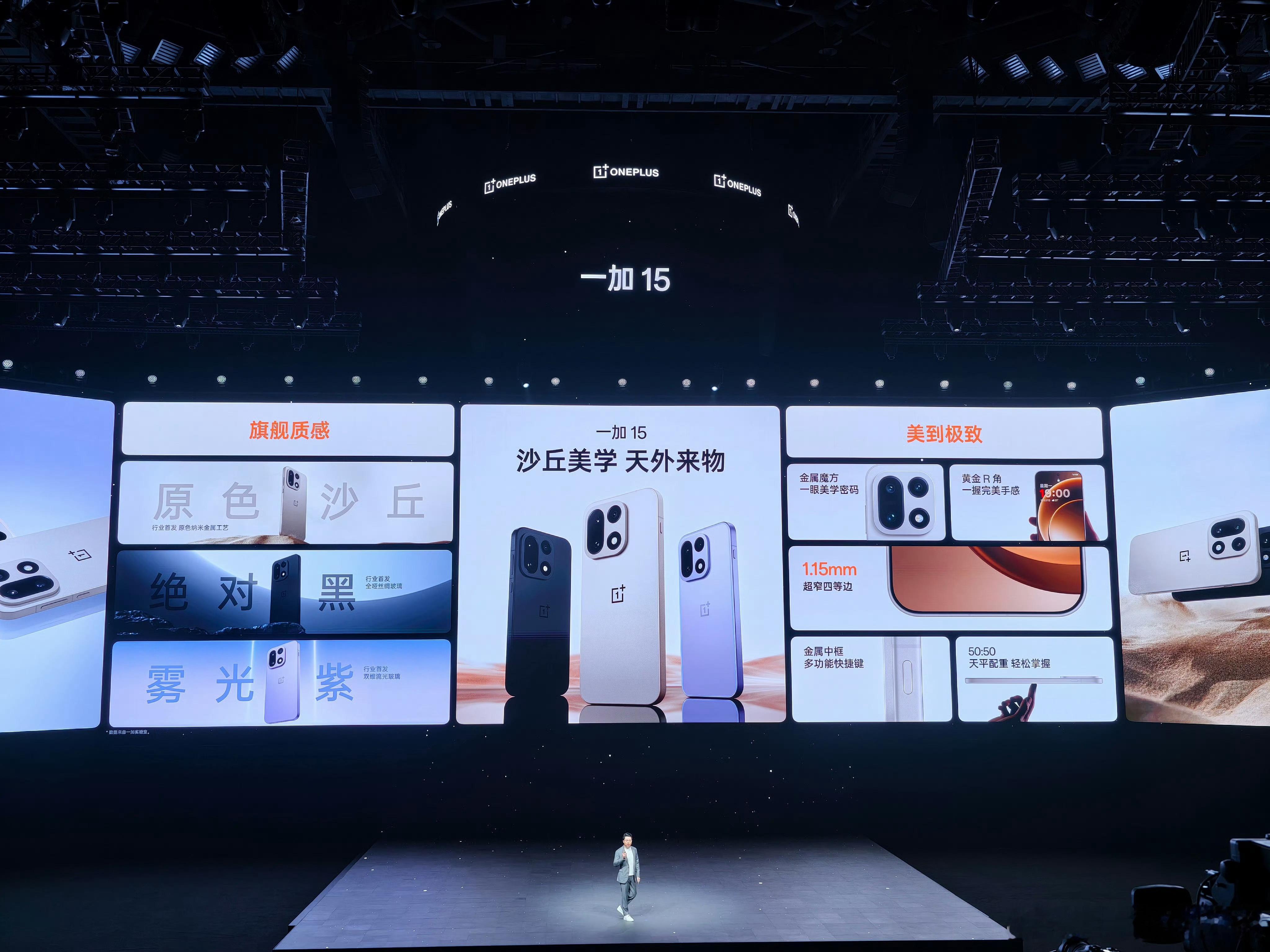 一加 15正面则采用四边等宽设计,黑边仅1.15mm。这次有三款配色,原色沙丘这个颜色行业首发原色金属纳米工艺,简约耐看不沾染指纹。还有一个绝对黑色配色,背面是全哑丝绸玻璃,手感挺好;雾光紫采用双维流光工艺。[并不简单]一加15和Ace6新品发布