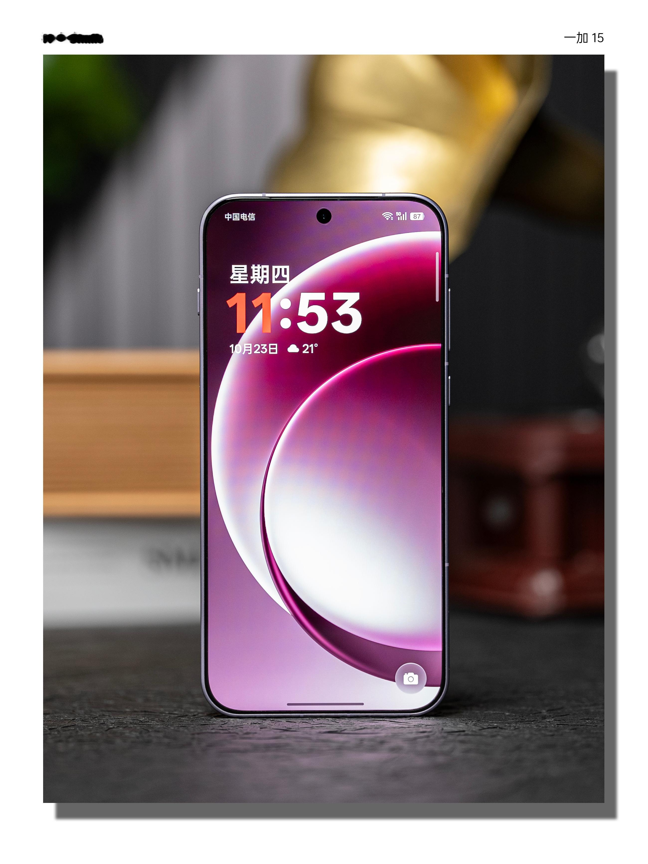 这款是“雾光紫”版本,整机以淡紫色为主,背板采用AG雾面处理,看起来有点像把清晨中的那淡淡的紫色雾气融入手机里一样。重量约215g,厚度8.31mm,手感不错。6.78英寸1.5K165Hz屏幕搭配上1.15mm超窄四等边,观感也很棒。你喜欢吗?一加15和Ace6新品发布