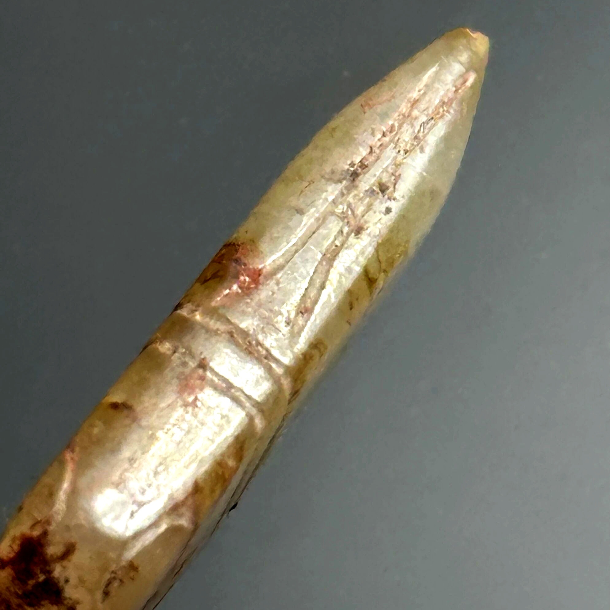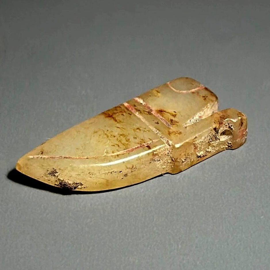 文化期的高古玉器,蝈蝈儿制作成这样的,造型简简单单,看上去十分粗糙,似样非样,但它的文化历史密码,较难破解,也许这就人们常说的:“文化底韵”。