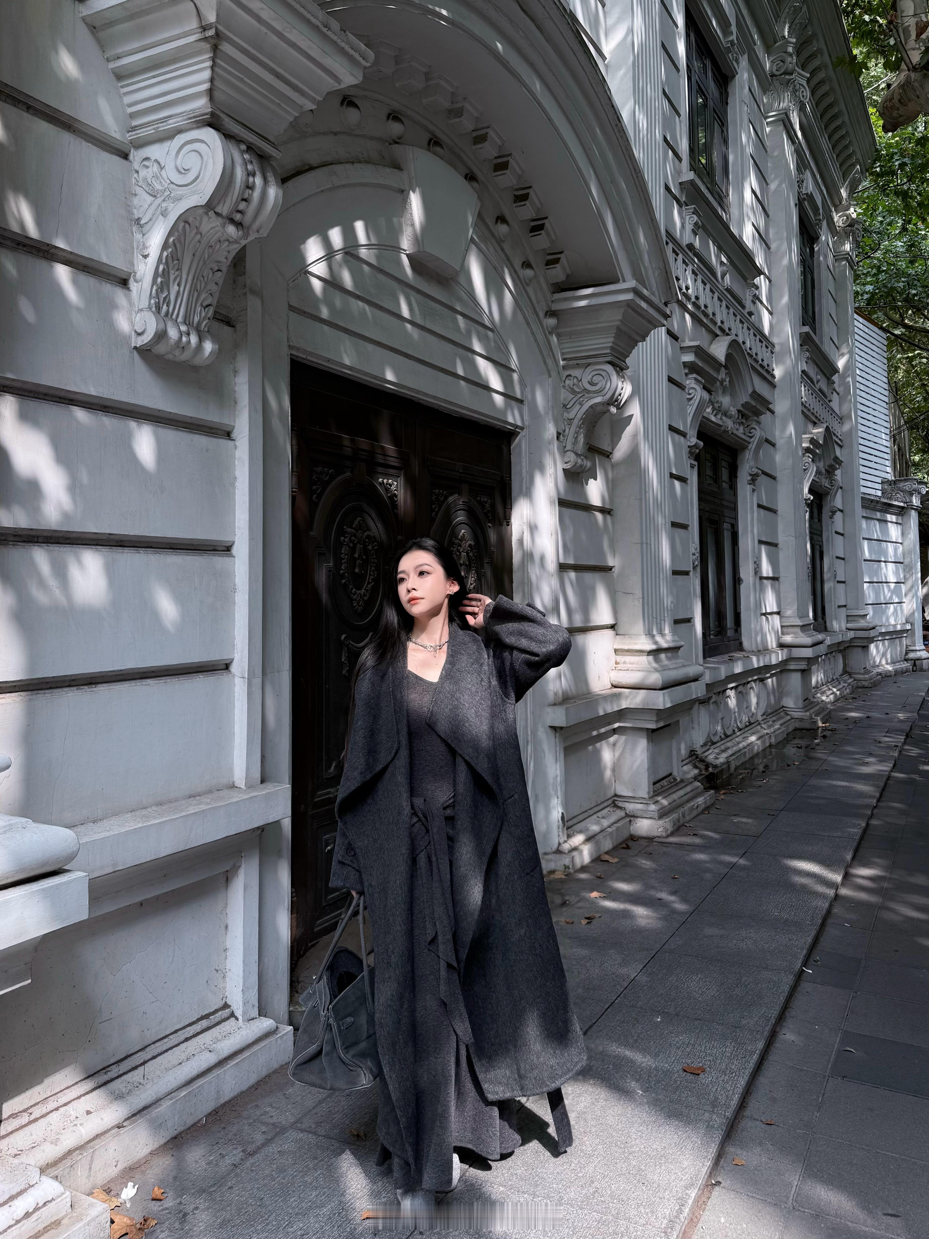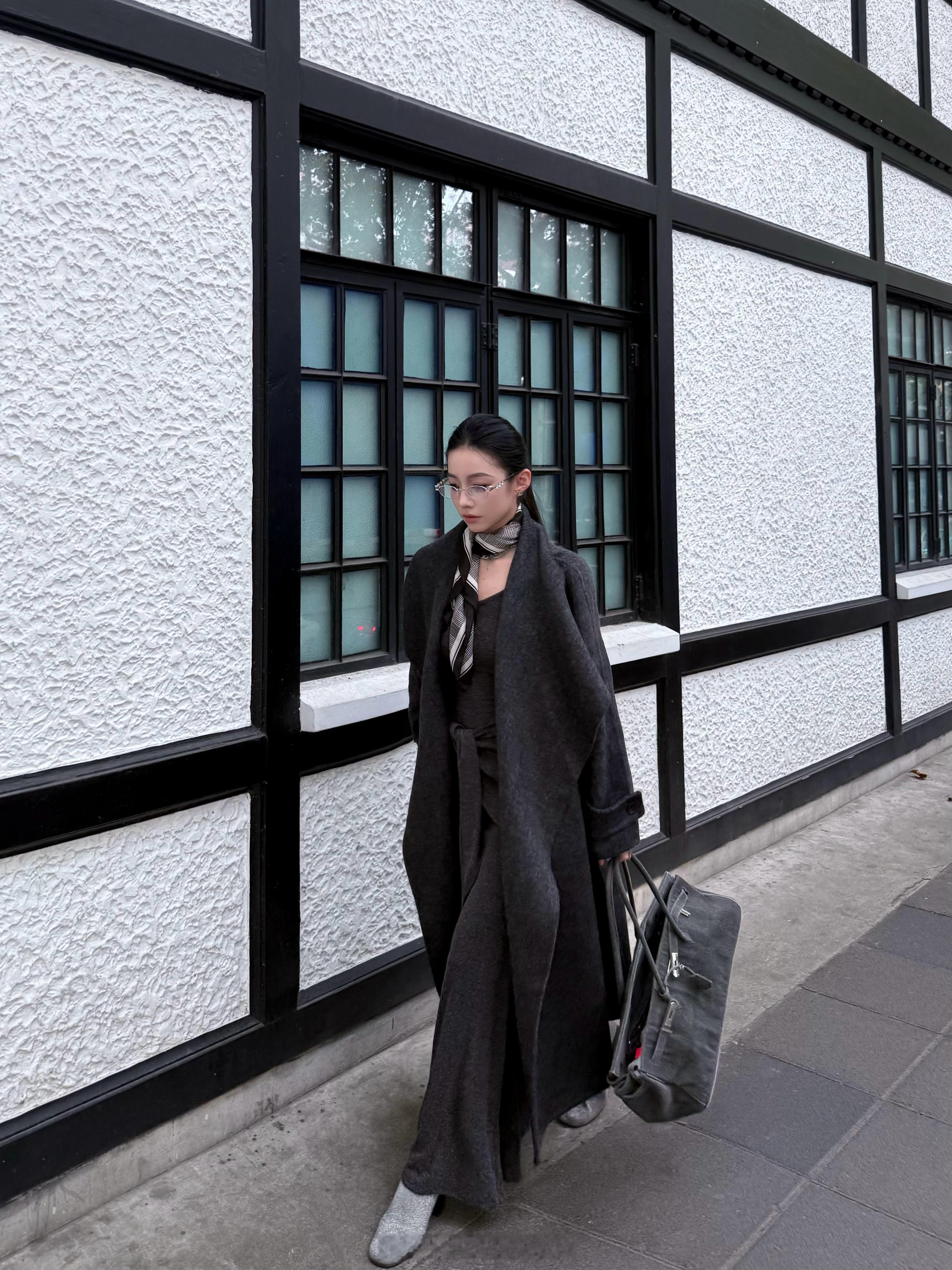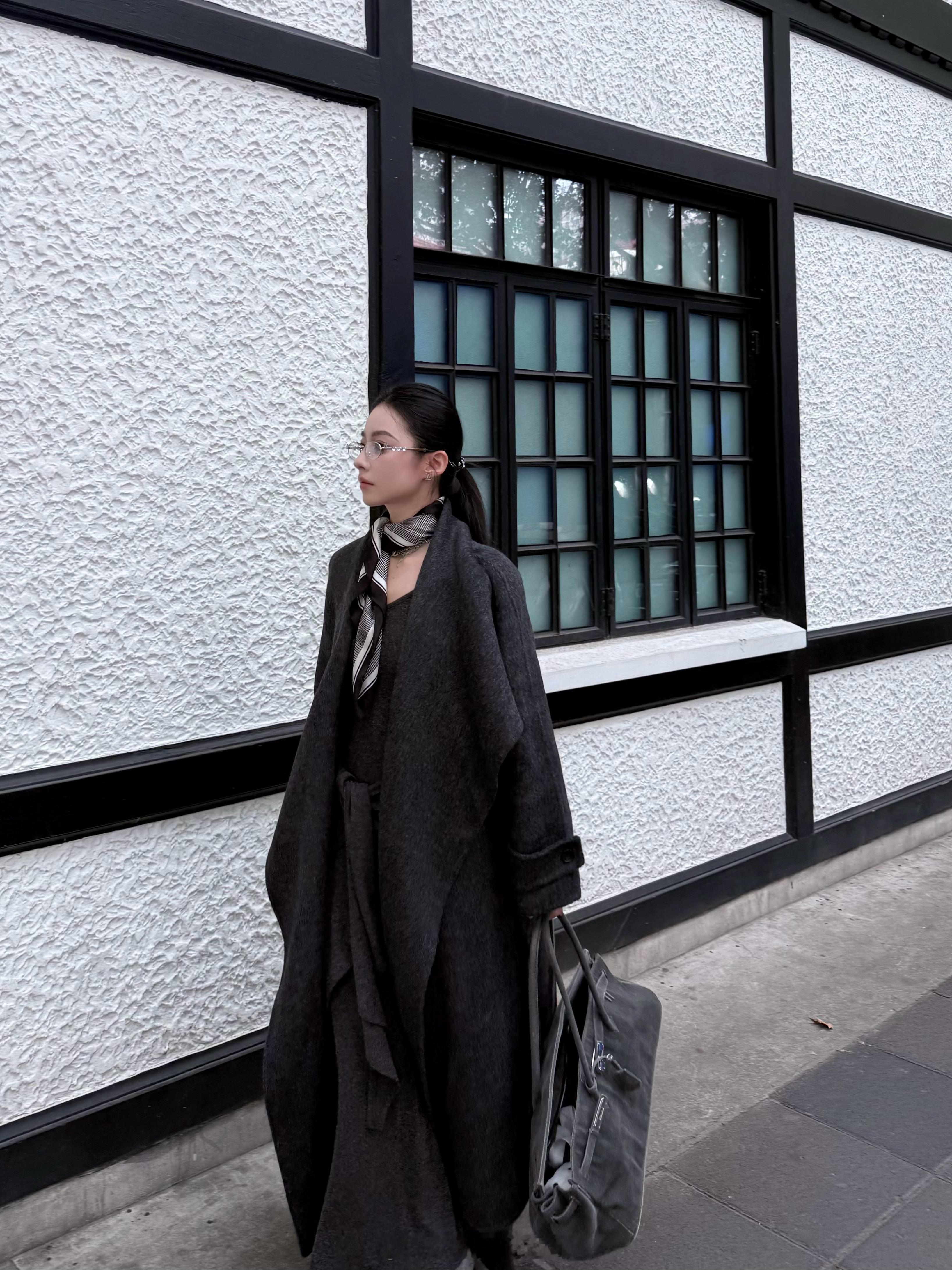 巴黎旧梦📓本期又一重磅🌪️这套就是一眼击中的高智感!深灰双面羊毛长衣上身一整
