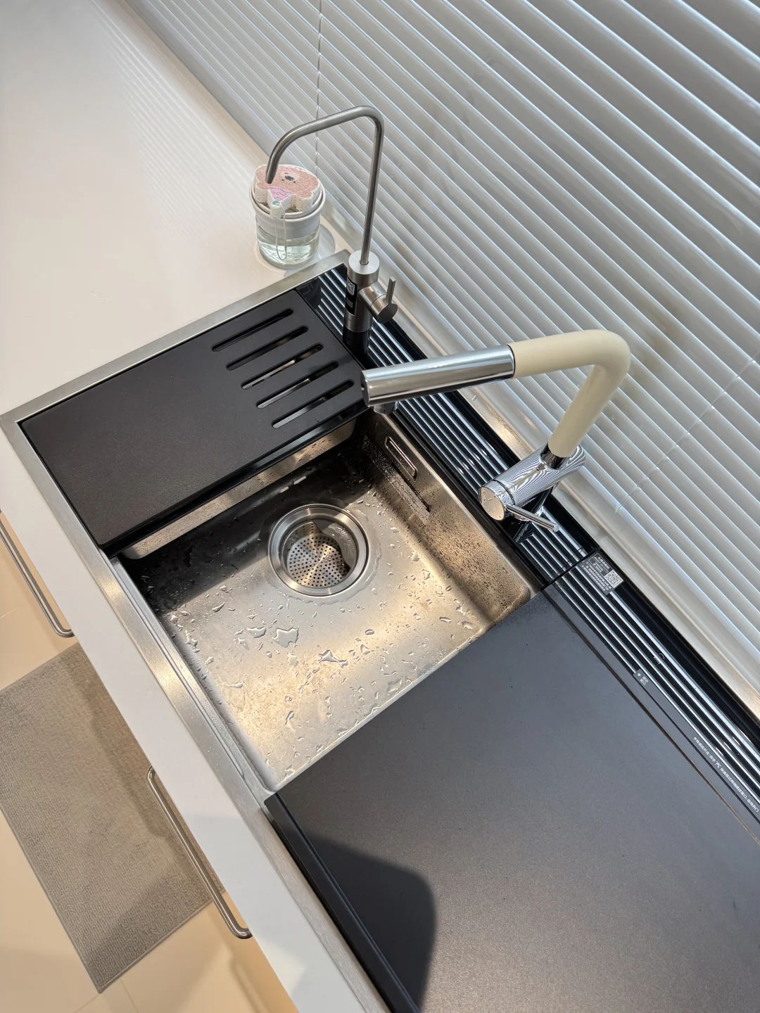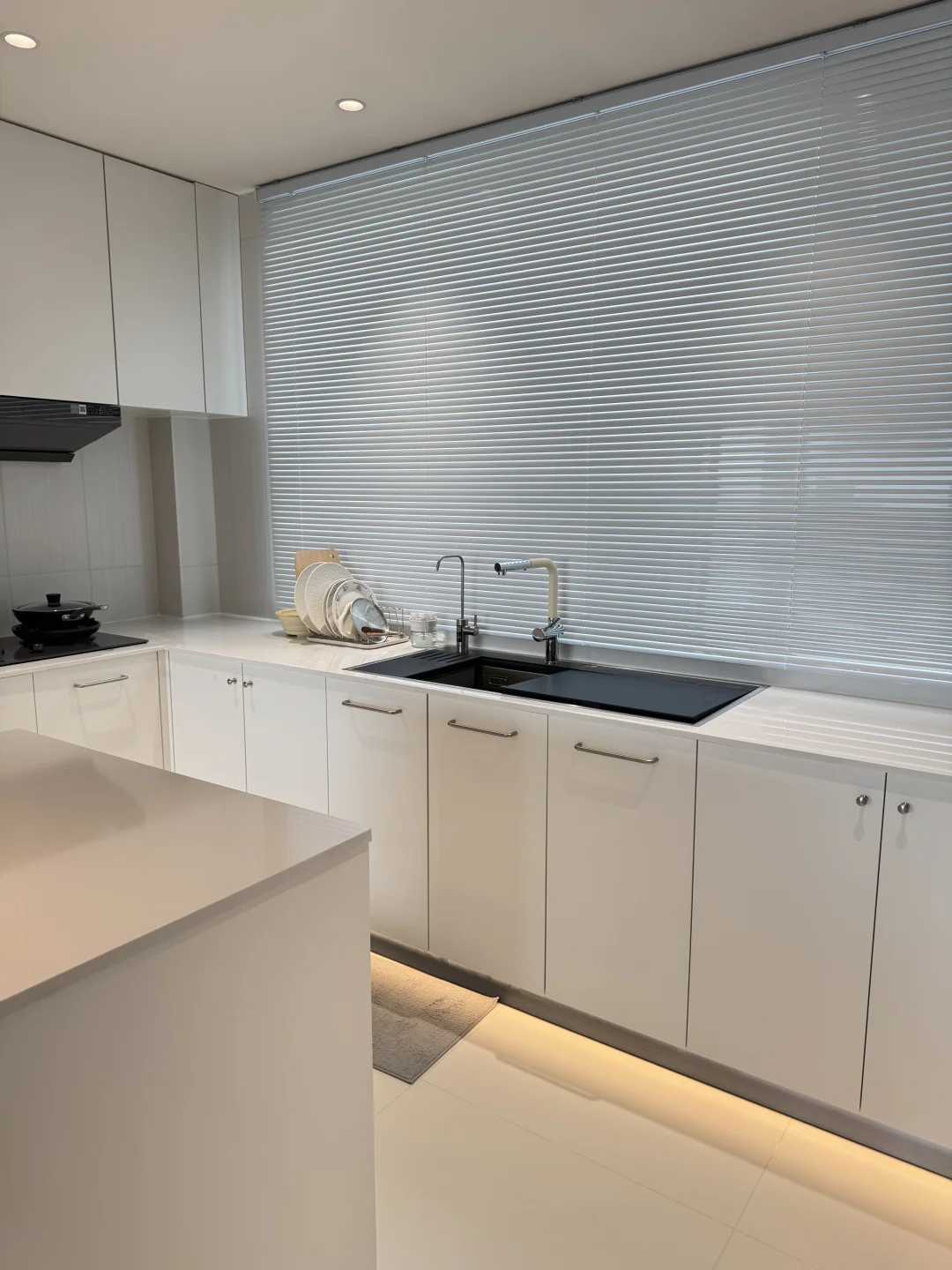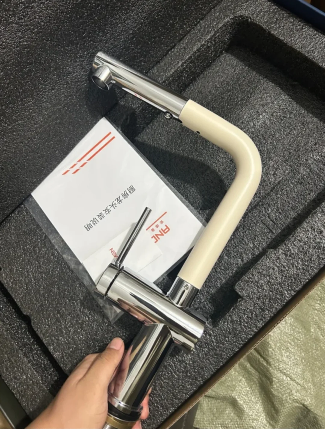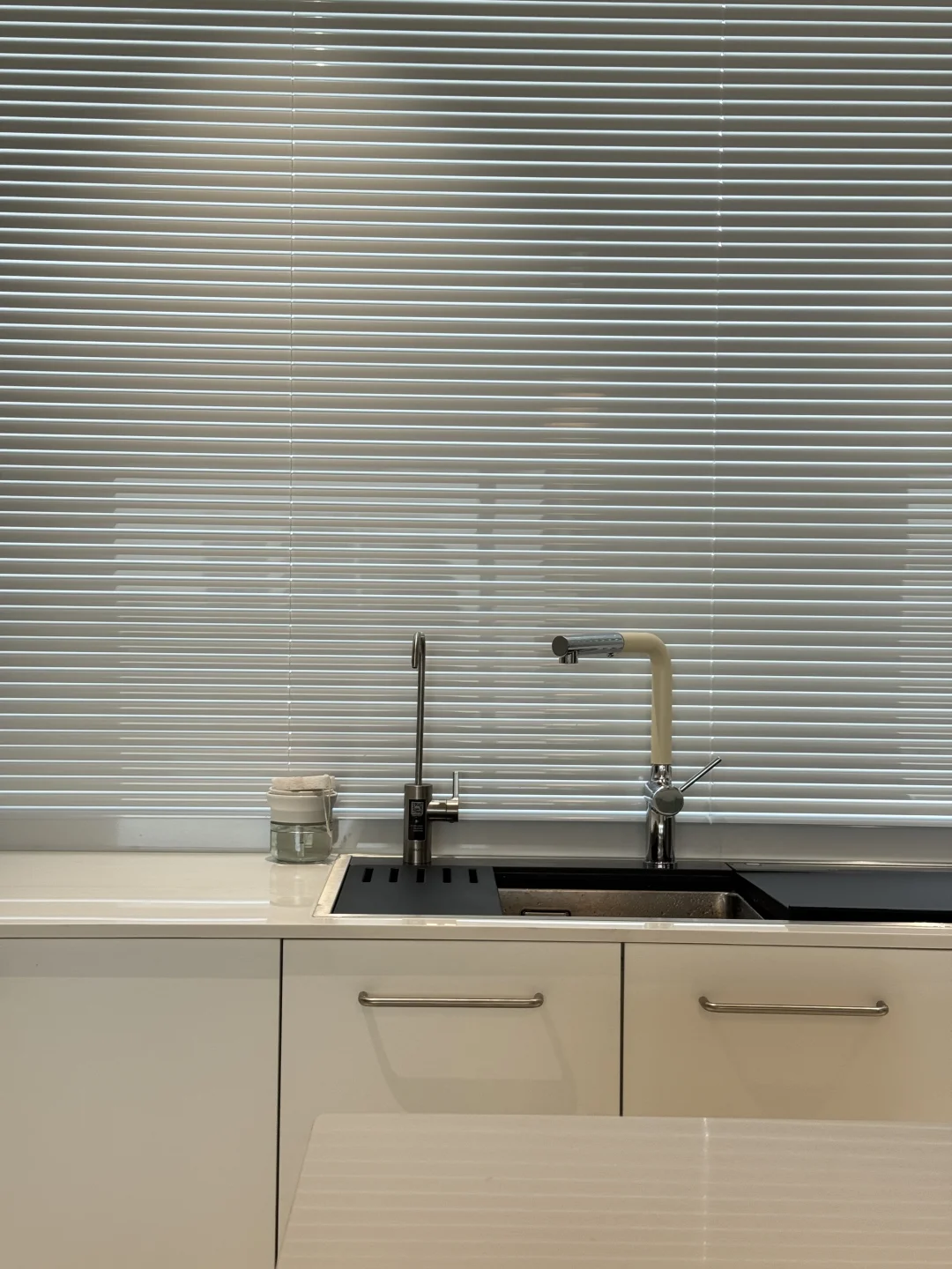 之前洗碗机自带的水龙头不太好用 近期给水槽新换了水龙头,简直太貌美了 L型我觉得更时尚高级 水龙头全铜材质很扎实 一只手都有些拿不动 奶白色磨砂质感不容易留水渍 是很高级的白越看越好看 抽拉式两种出水模式 洗东西也不溅水[萌萌哒R] 简直和我家厨房太配了 大家觉得怎么样呢~~