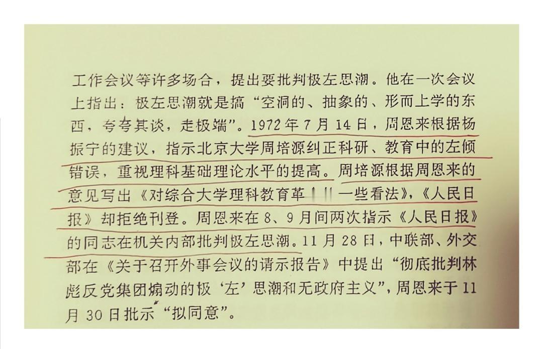 1972年,杨振宁先生为新中国科研、教育作出了哪两项贡献? 1957年,杨振宁与李政道两位先生一起因“宇称不守恒定律”而获得诺贝尔物理学奖。 1971年7月,杨振宁先生以私人身份首次访问新中国。 第二年,也就是1972年,杨振宁先生为新中国做了两件大好事。 1972年,杨振宁先生促成中美首批学者互访,并推动200多名中国学生赴美留学,这其中包括后来的“光纤之父”高锟、中科院院士周光召等人。新中国的留学生再次叩开了留学欧美的大门,为学习、吸收欧美先进科学技术创造了条件。 1972年7月14日,杨振宁先生建议周恩来总理纠正中国科研、教育领域的左倾错误,并重视理科基础理论水平的提高。周恩来总理欣然接受了杨振宁先生的建议,随即指示北京大学周培源先生着手落实。周培源先生根据周恩来总理的意见写出《对综合大学理科教育革命的一些看法》,《人民日报》却拒绝刊登。周恩来总理又在8、9月间两次指示《人民日报》 的同志在机关内部批判极左思潮。 从1972年的两件事情里,我们可以知道杨振宁先生自1971年访问新中国后,即开始为中国的科研、教育等事业的发展在积极努力,在无私奉献。