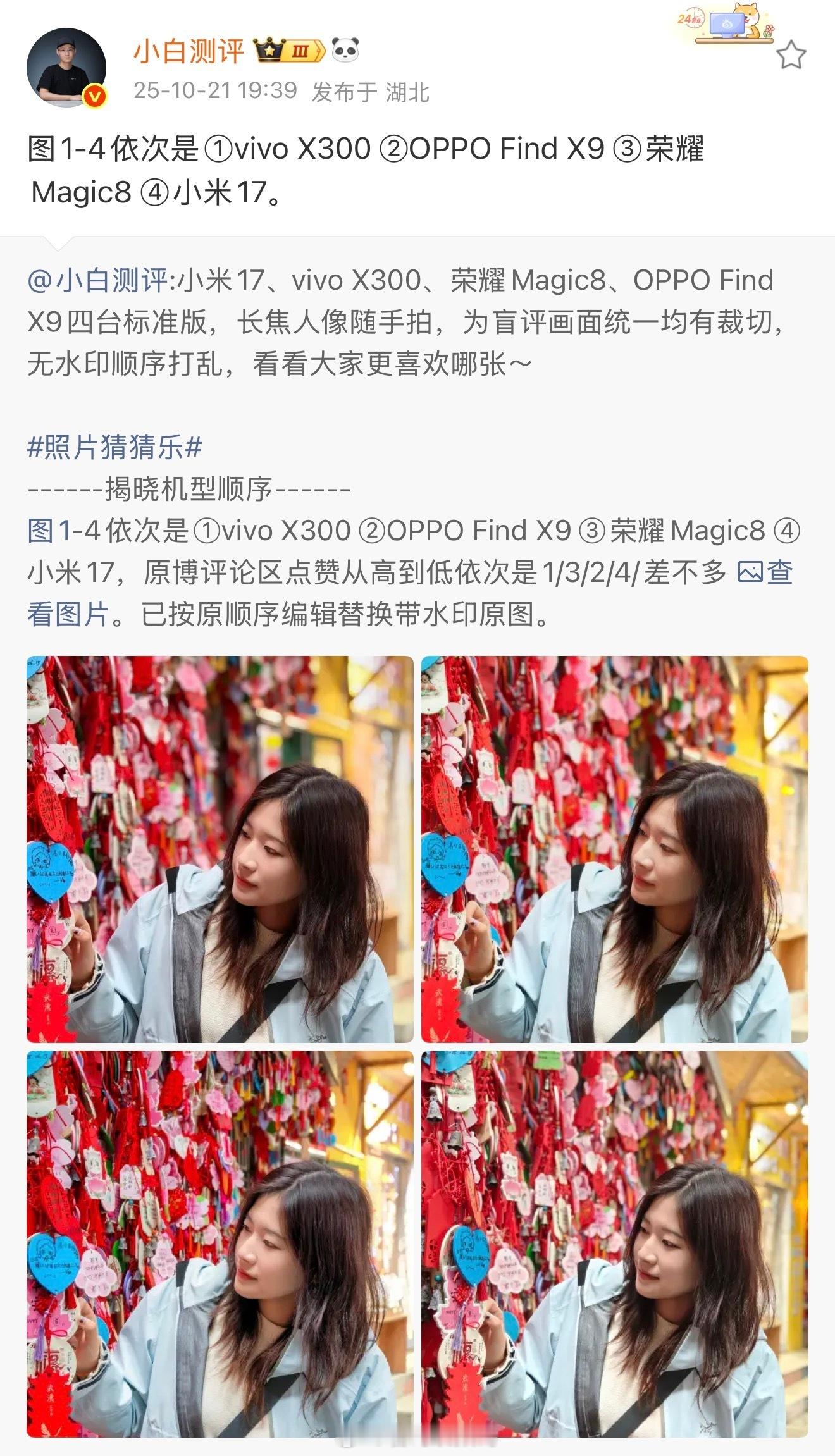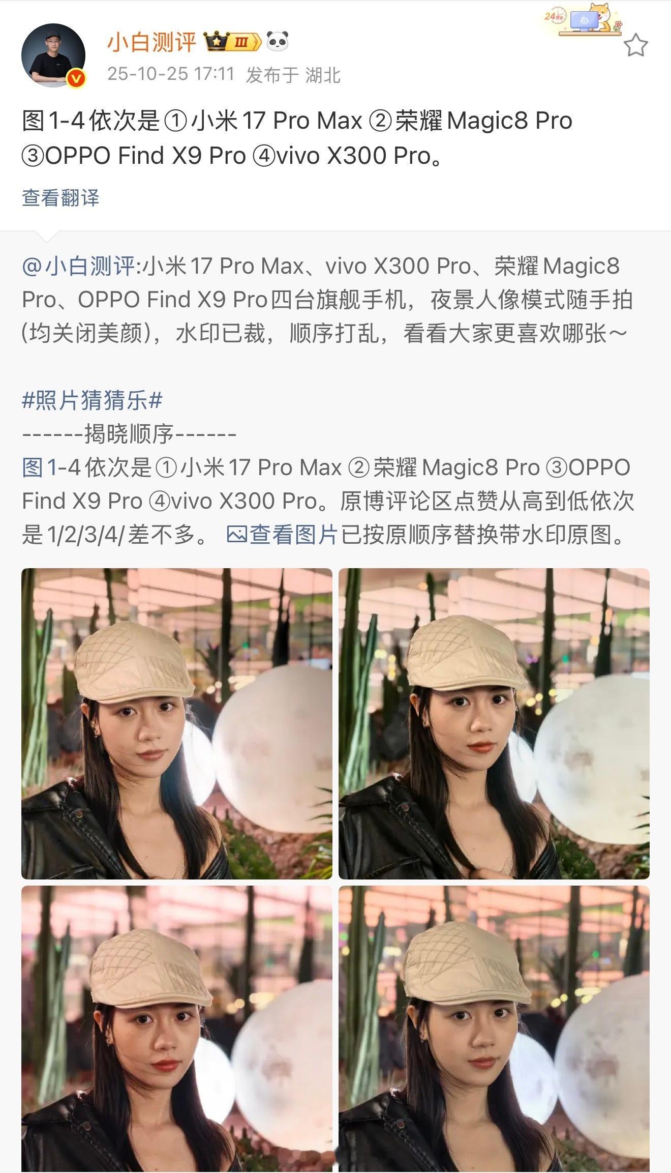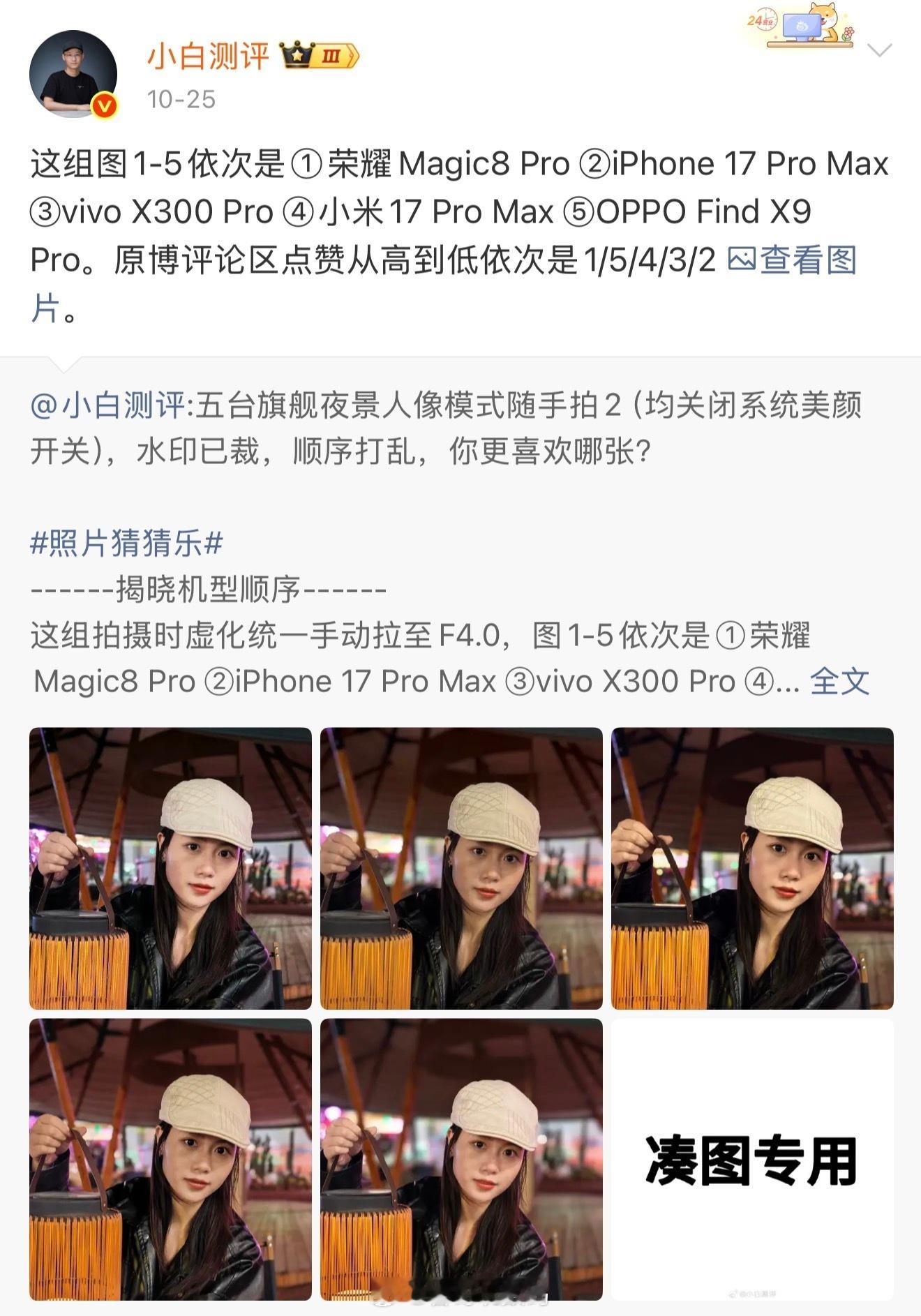 近期组织了一次旗舰手机新品人像拍摄盲评,从网友们的投票结果来看,荣耀Magic8