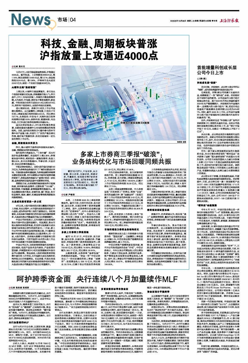 本周,上市券商2025年三季报将密集发布。截至目前,已有中信证券、东方财富、国元证券、长城证券等7家券商披露了三季报。其中,头部券商仍是业绩总量榜上的“定海神针”,而中小券商则成为增速榜上进击的“后浪”。在业内人士看来,今年前三季度A股市场交投持续活跃、两融规模提升明显,为券商各项业务的稳步推进带来“活水”。考虑到政策、资金、业绩和估值等多重因素,券商板块有望迎来配置新机遇。