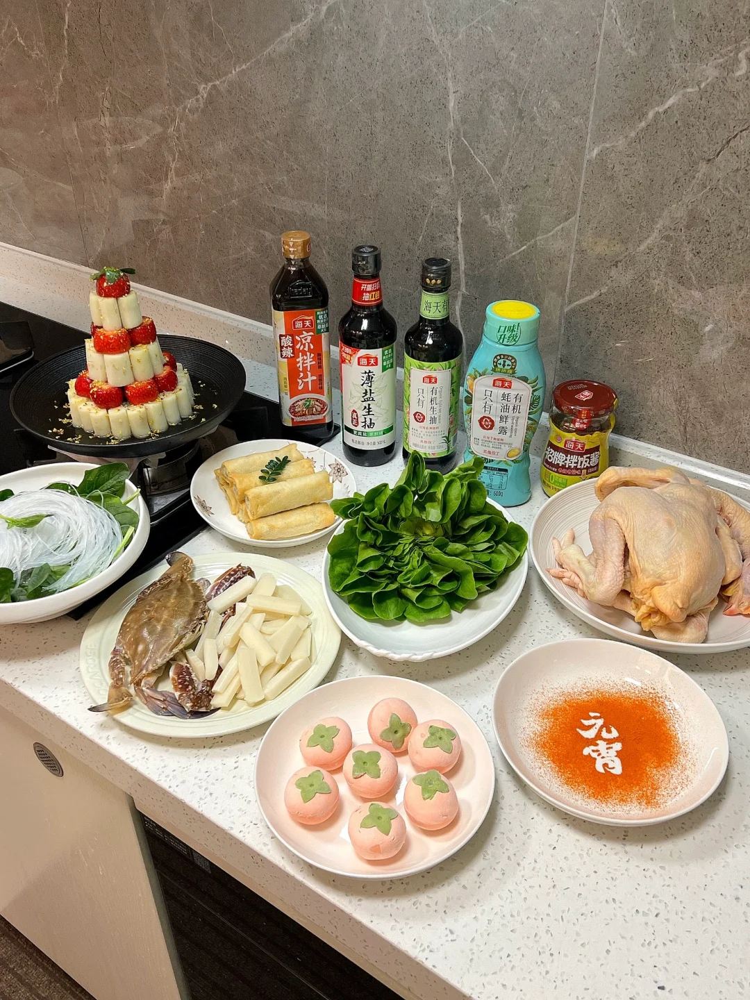 时光如白驹过隙,很快就正月十五,也意味着一个完整的年结束了🔚​ 春节就这样隆重而来,悄然而去…​ 欢声笑语过后,恢复了平静​ ​ 长大后我们越来越在意和家人吃饭的节日,开工即将到来,那就提前安排大家热热闹闹聚餐一起吃元宵饭~​ 过年大鱼大肉吃的够够的,家人都表示想多吃点蔬菜。然后跟男朋友两人商量完做什么菜品,就开始备菜啦~​ ​ 🏮元宵菜单分享:​ 秋葵土豆​ 柿子汤圆​ 黄瓜虾仁​ 葱油鸡肉​ 蚝油生菜​ 螃蟹年糕​ 草莓山药​ 年味春卷​ ​ 元宵的餐桌上,汤圆是必不可少的,寓意团团圆圆,阖家美满。在南方有些地区正月里年糕也是必备的,加点我爱吃的梭子蟹一起炒,香香辣辣的一大盘当主食。过年那段时间一两天一只白切鸡,今天这餐的鸡就整个葱油鸡做法,葱花加蒜末泼点热油,接着加几勺海天有机生抽拌均匀,淋在鸡肉上,最后往米饭里一拌,再次爱上吃鸡肉!!还有少不了的绿色菜品,秋葵土豆泥,蚝油生菜,做起来敲简单又爽口的酸辣黄瓜拌虾仁,直接倒入海天凉拌汁拌均匀就完成了!!对咯 我的调味品都是在美团👆买的🔍用海天嗨新年,下单还有满20-8的优惠券呢 民间厨神挑战赛海天年味节美团美团外卖男朋友做饭的日常元宵家宴家庭聚餐菜谱家常快手菜元宵节
