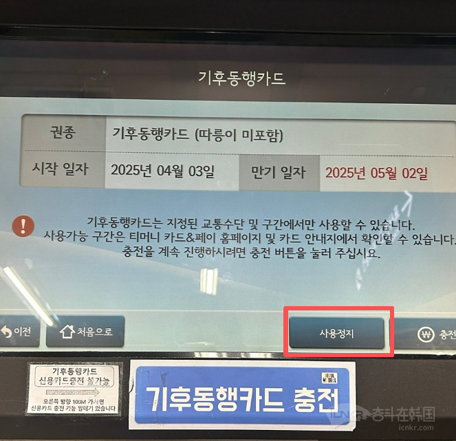点菜单里的「기후동행카드 사용정지(使用终止)」