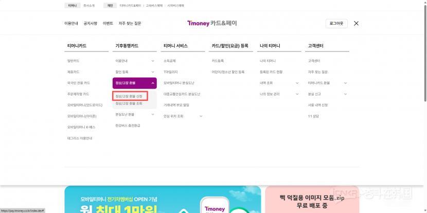전체메뉴 → 기후동행카드 → 정상/고장 환불 신청
