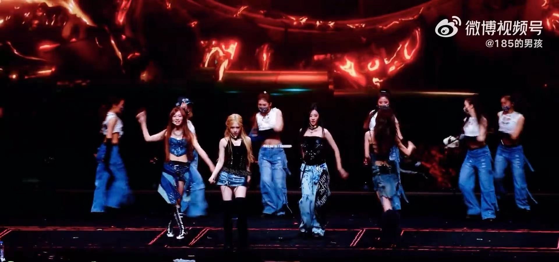 RED是懂自古红蓝出CP的 红蓝配色本来就容易出彩,她们还把这种对比玩到极致。服装的剪裁和材质在灯光下呈现出不同质感,红色部分耀眼夺目,蓝色部分神秘深邃,整体效果既时尚又有艺术感。