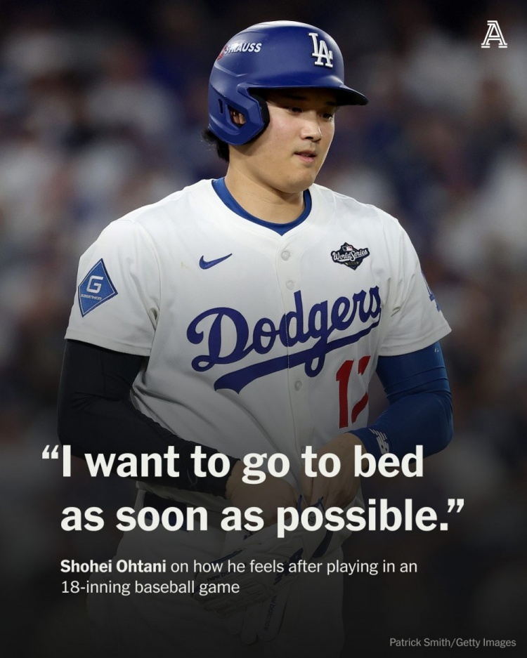 本场比赛敲出两发本垒打,四个打席贡献四支长打后被四次故意保送的大谷翔平赛后接受采访时表示,我想尽快回去睡觉。