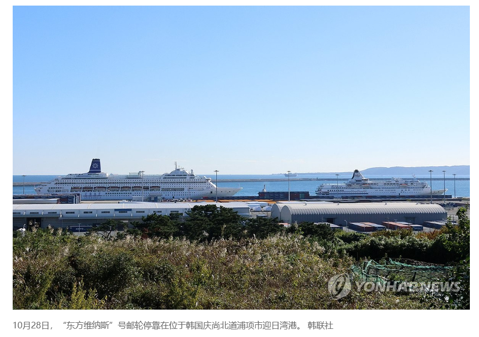 韩联社浦项10月28日电 2025年亚太经合组织(APEC)工商领导人峰会28日将在韩国庆尚北道庆州市开幕,用作与会工商领袖住宿设施的两艘大型邮轮当天上午驶入与庆州临近的浦项市迎日湾港。