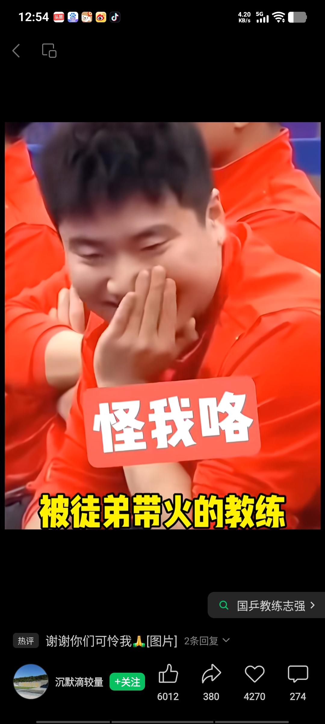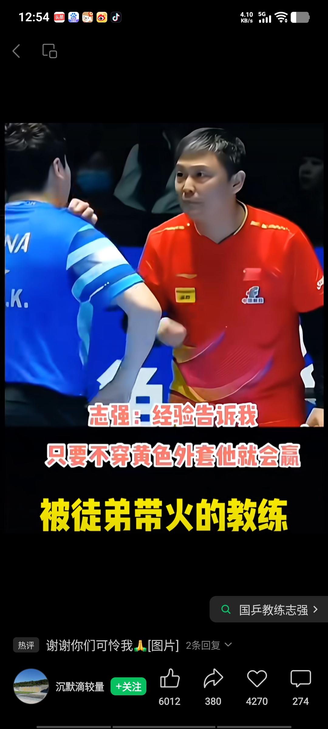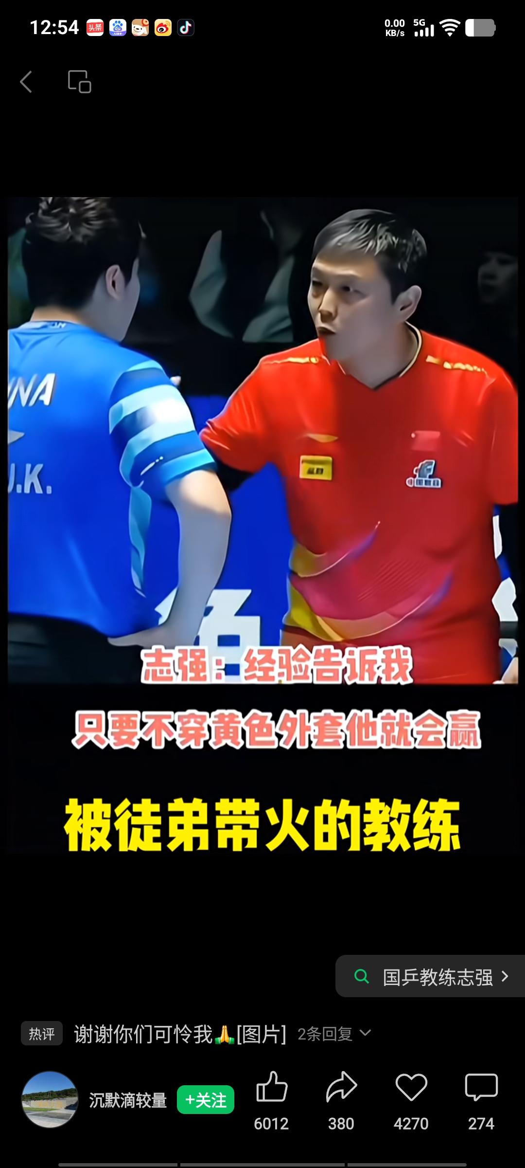 刘志强教练心理素质过硬,他也是被徒弟梁靖崑带火的教练。刘志强对梁靖崑又气又爱,多少次梁靖崑都是在零比二、零比三落后的情况下实现逆转。看他的比赛就如同坐过山车一般,比赛里他有时被对手打得晕头转向,有时又把对手打得毫无招架之力。就在大家都觉得梁靖崑难堪大用的时候,亚锦赛决胜盘,梁靖崑挺身而出,在落后的局面下,硬生生把日本选手打得毫无还手之力。真可谓先给对手希望,最后让对手绝望。刘志强作为梁靖崑的教练,也拿他没辙。甚至有一次比赛中,梁靖崑让刘志强脱掉那件晃眼的外衣,搞得众人哭笑不得。