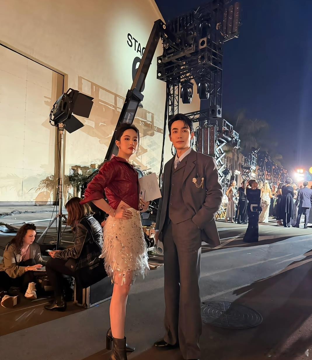 刘亦菲朱一龙洛杉矶同框,37岁朱一龙害羞拘谨,身体绷得笔直,不敢看刘亦菲