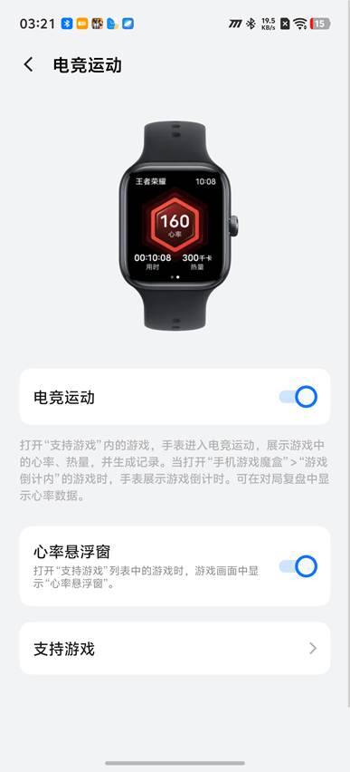 iQOOWATCHGT2的电竞模式2.0是其一大亮点。开启游戏后,手表会自动识别并记录游戏名称、消耗热量、平均心率、运动时间等详细数据。心率数据还可以直接投射到手机上的悬浮窗显示,并支持随意拖拽调整。此外,手表还支持卡片数据分享、游戏倒计时与通知提醒,为电竞爱好者提供了全方位的辅助体验。