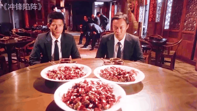 电视剧看的少,印象最深的是电影《冲锋陷阵》里面,老爷子请郭富城和陈奕迅吃辣椒配二