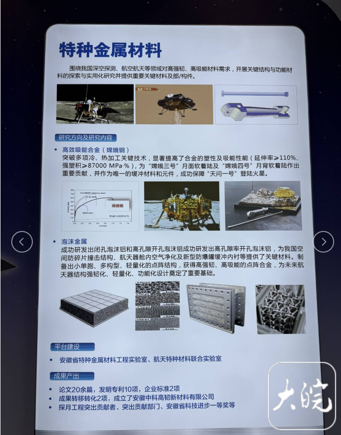 中科院合肥物质院固体所展厅对“嫦娥钢”的部分介绍