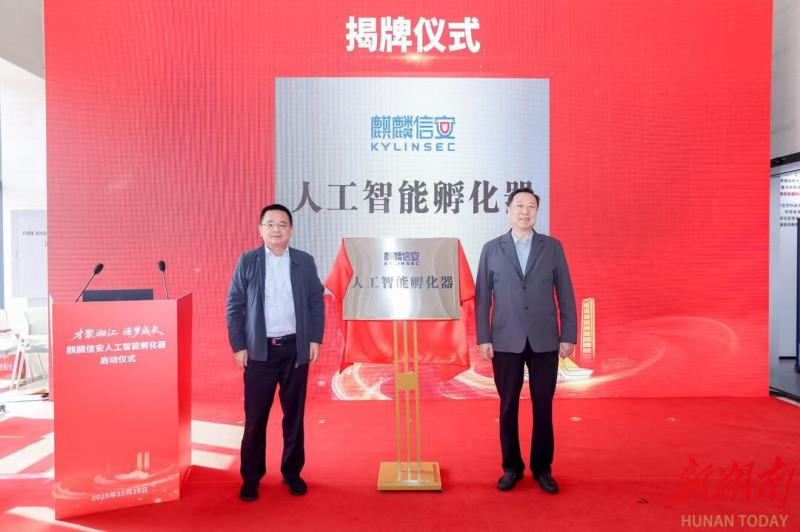长沙晚报掌上长沙10月28日讯(湘江早报全媒体记者肖芳)今天,“才聚湘江逐梦成长”麒麟信安人工智能孵化器启动仪式在湖南湘江新区麒麟科技园举行。湖南省委副秘书长、省支持大学生创业工作协调机制办公室主任王学武与麒麟信安董事长杨涛共同为孵化器揭牌,标志着我省在人工智能领域搭建起“产学研用投”协同创新的全新平台,为区域AI产业高质量发展注入强劲动能。